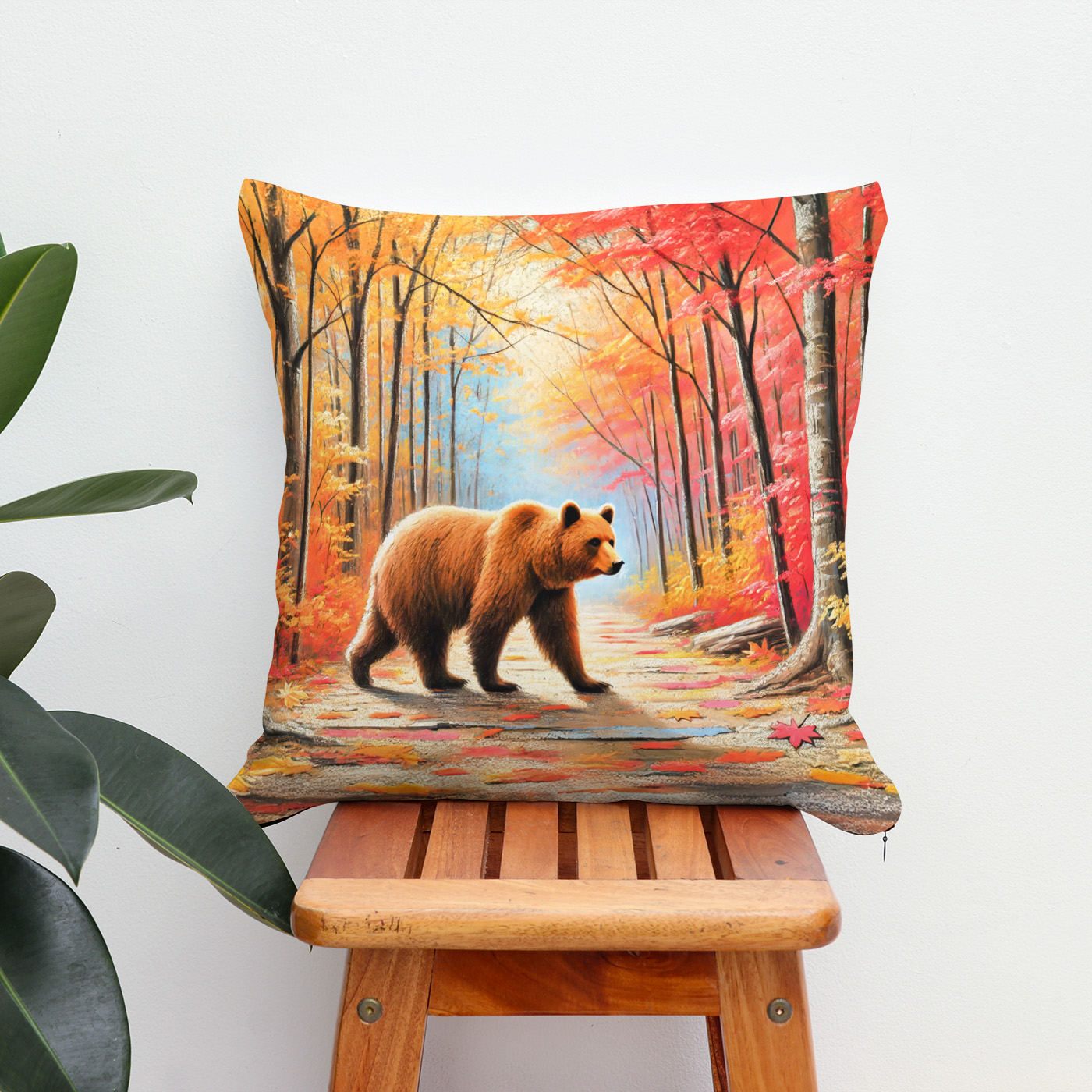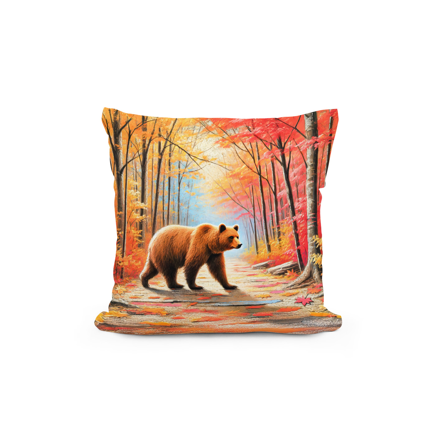 raxxa Premium Kissen Brown Bear in Autumn Forest Pastel Chalk Art