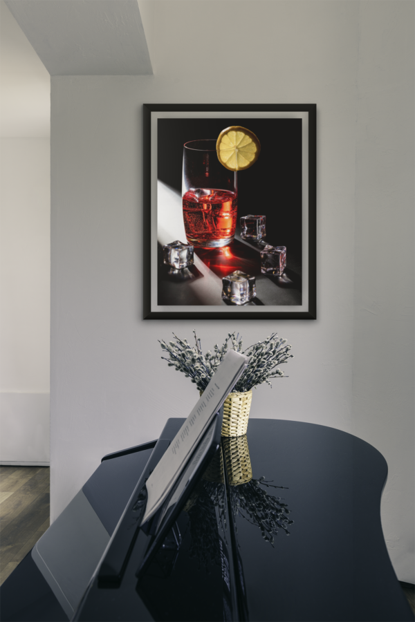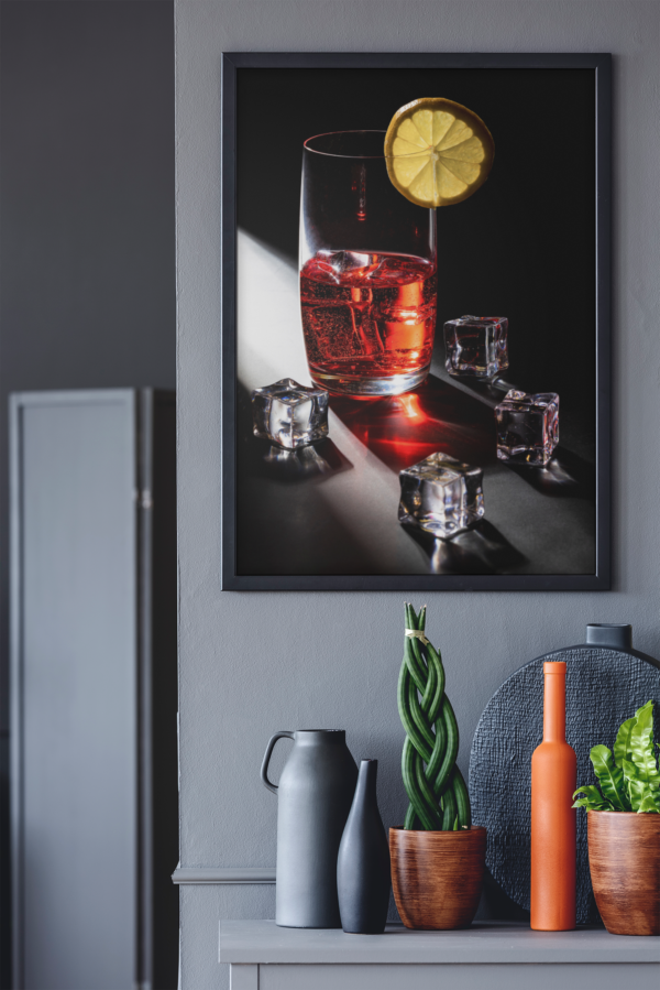 boisson rouge avec des glaçons et du citron en contre-jour,