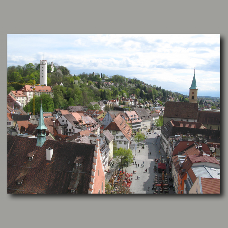 Vue aérienne de Ravensburg Vue de la tour avec la colline du château, le Mehlsack et l'église de la ville