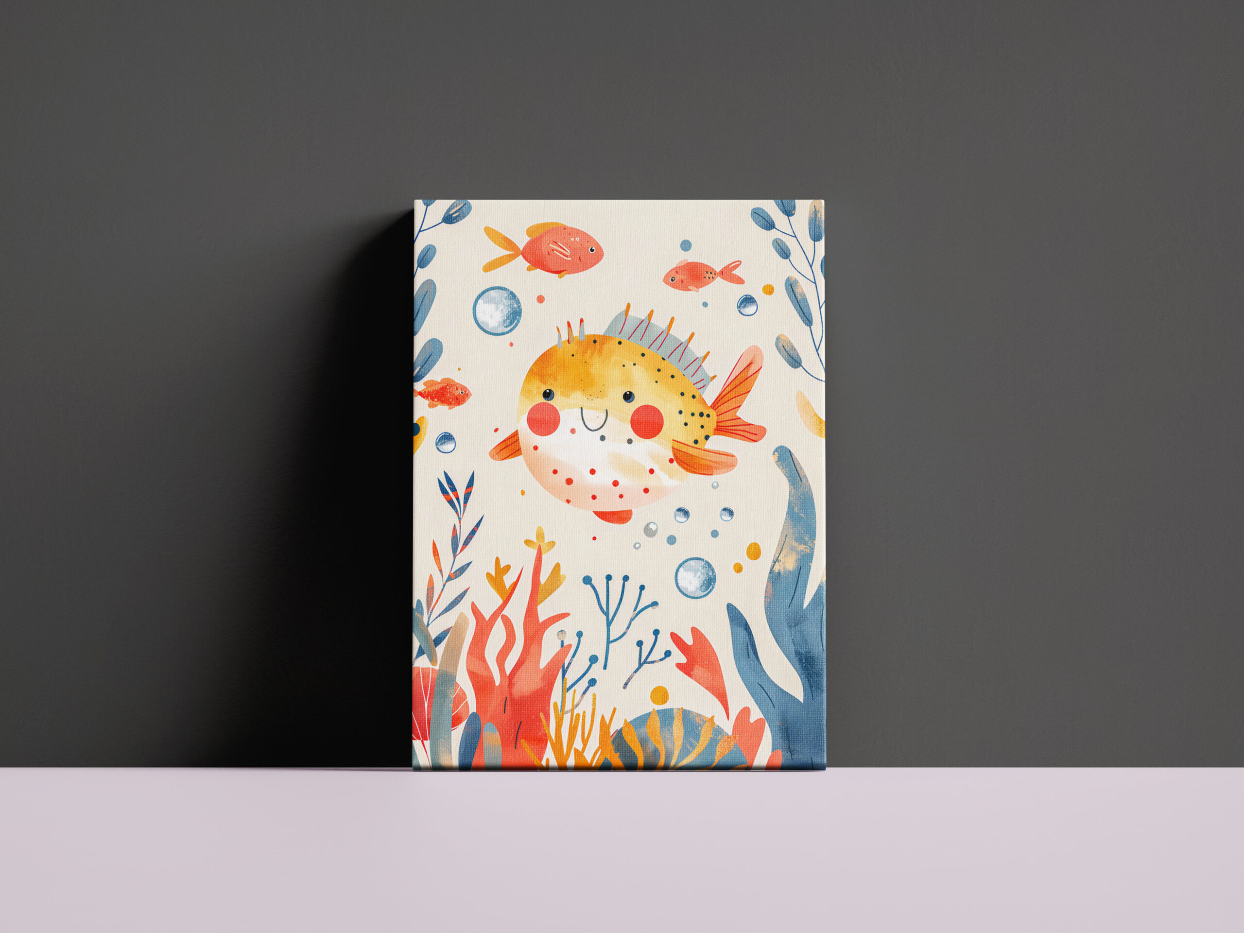 "Cartoon of Pufferfish at Reef" by Anja Frost
