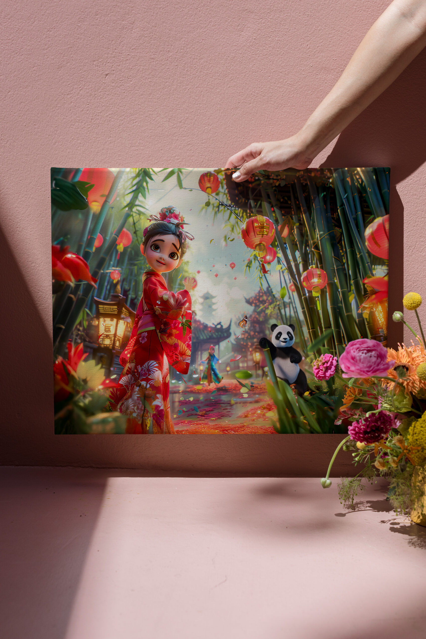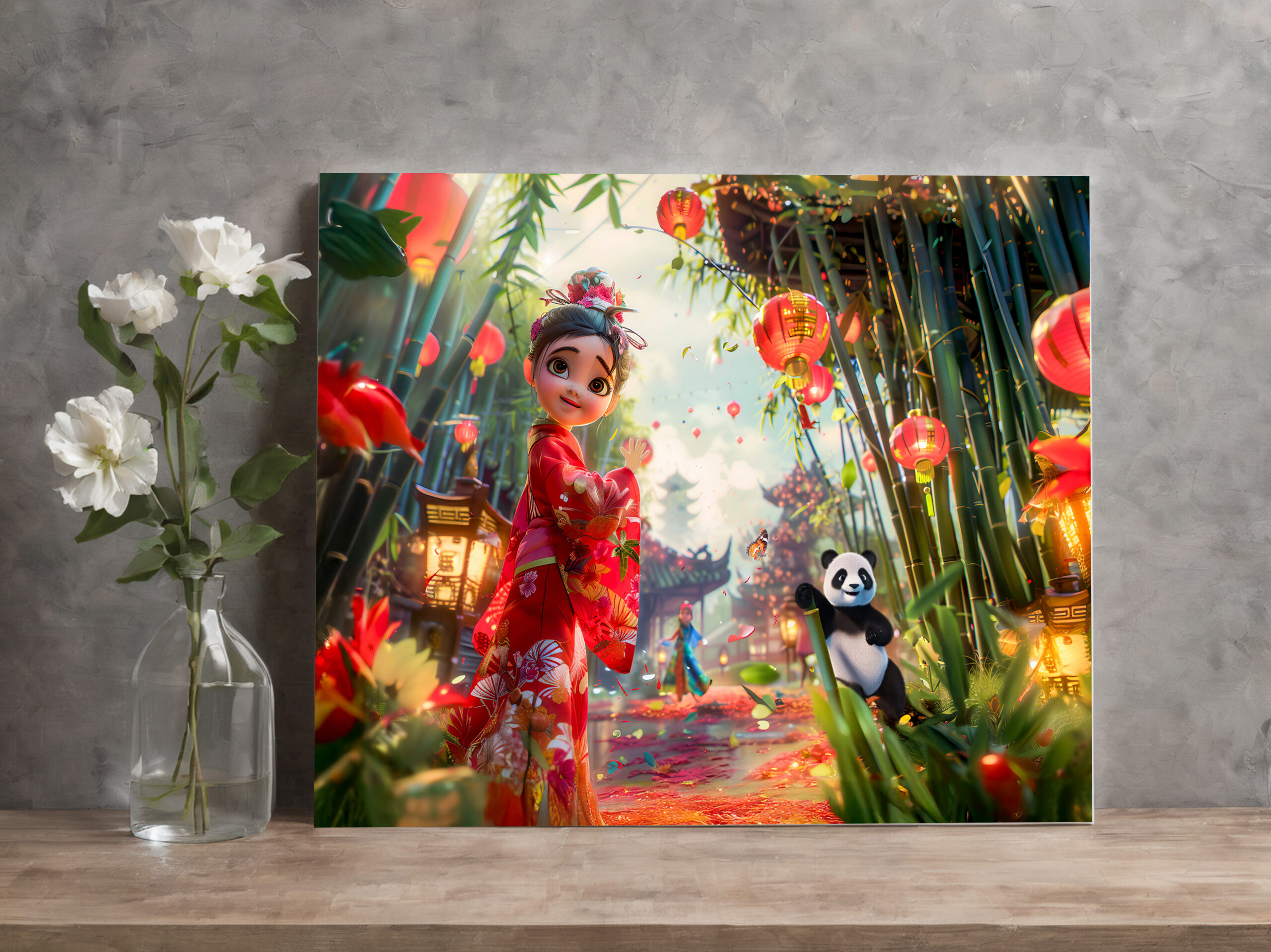 "Comic Girl in Bamboo Forest with Panda" by Anja Frost