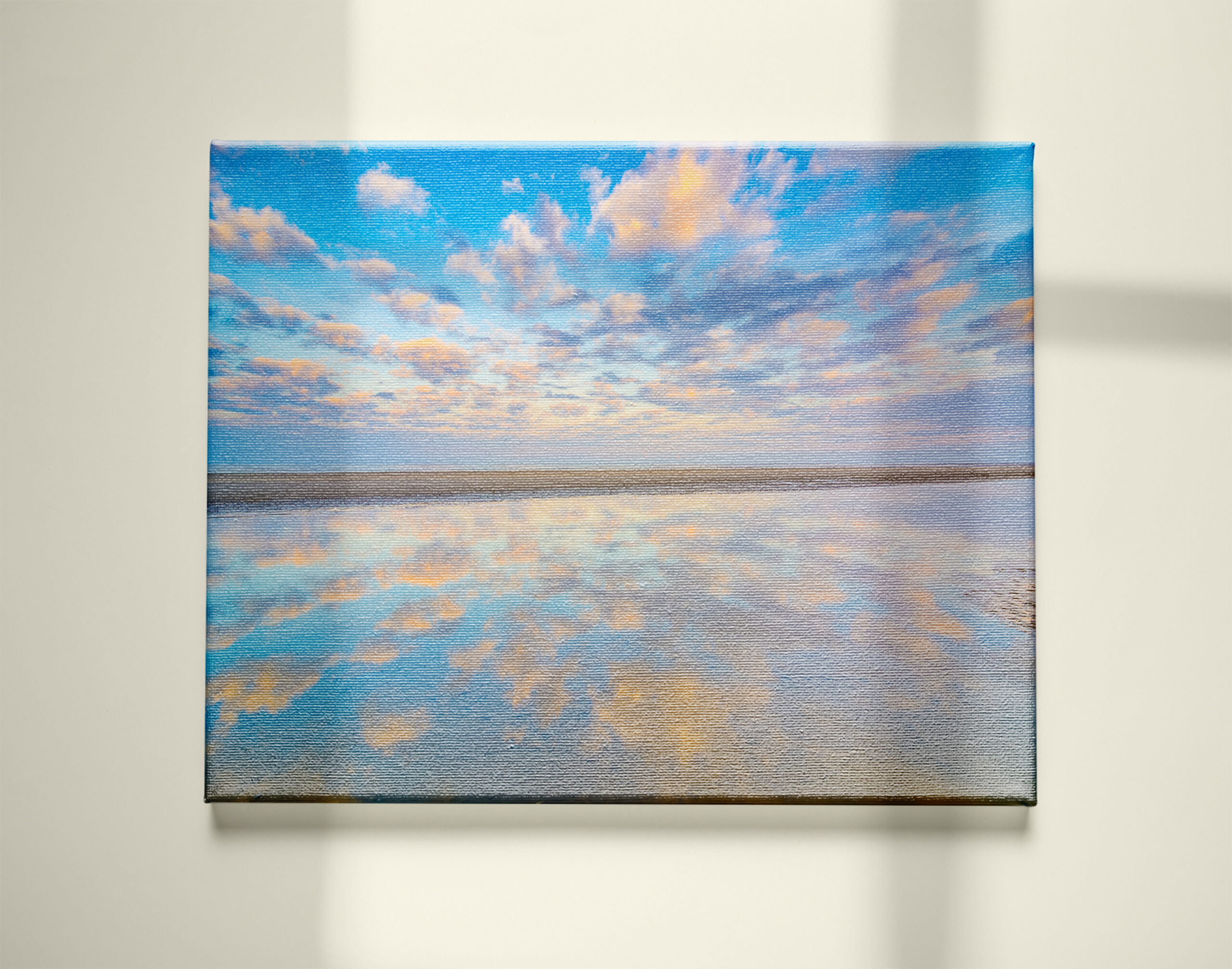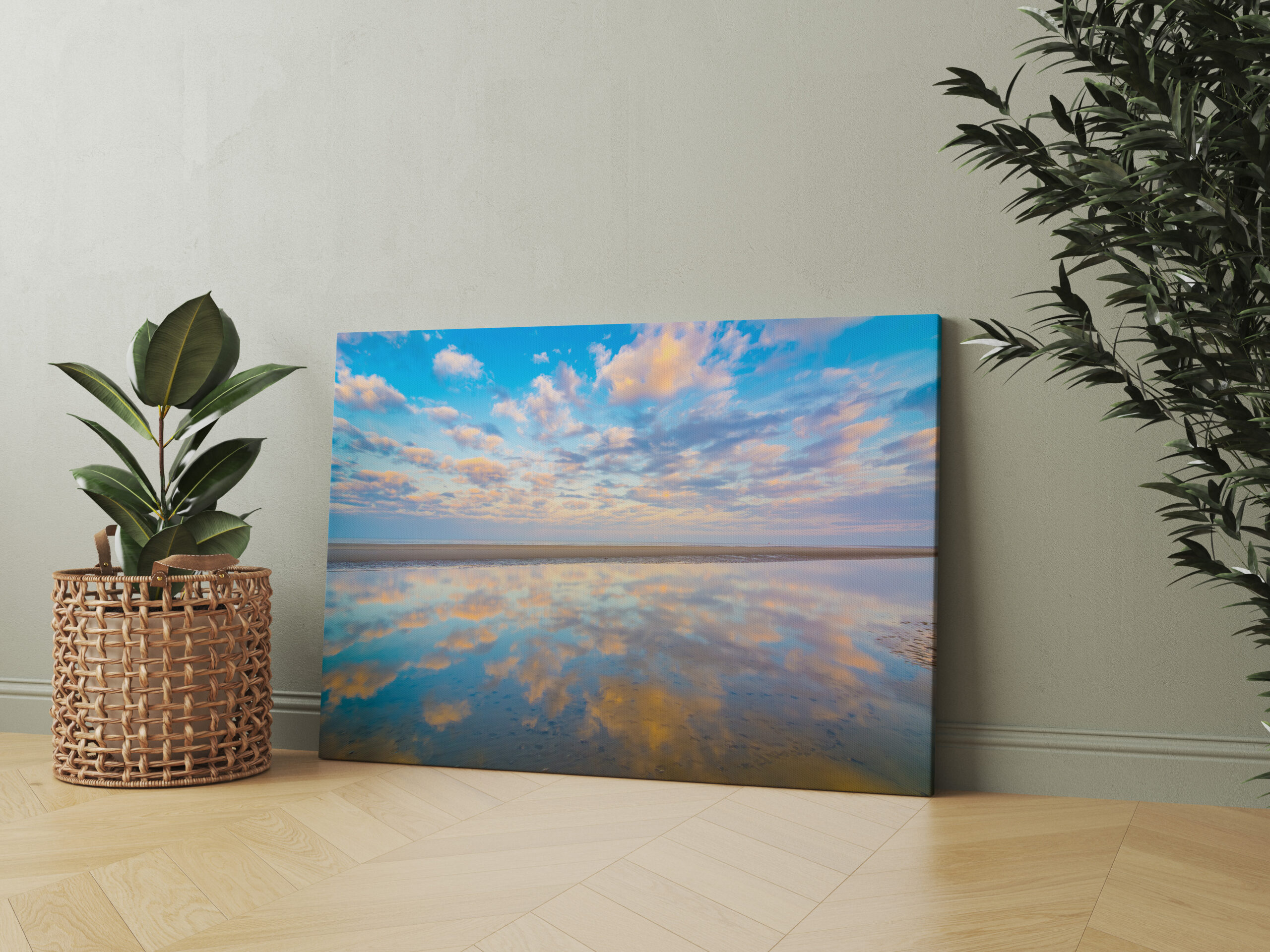 Spiegelung von Wolken am Strand der Nordsee in Sankt Peter Ording