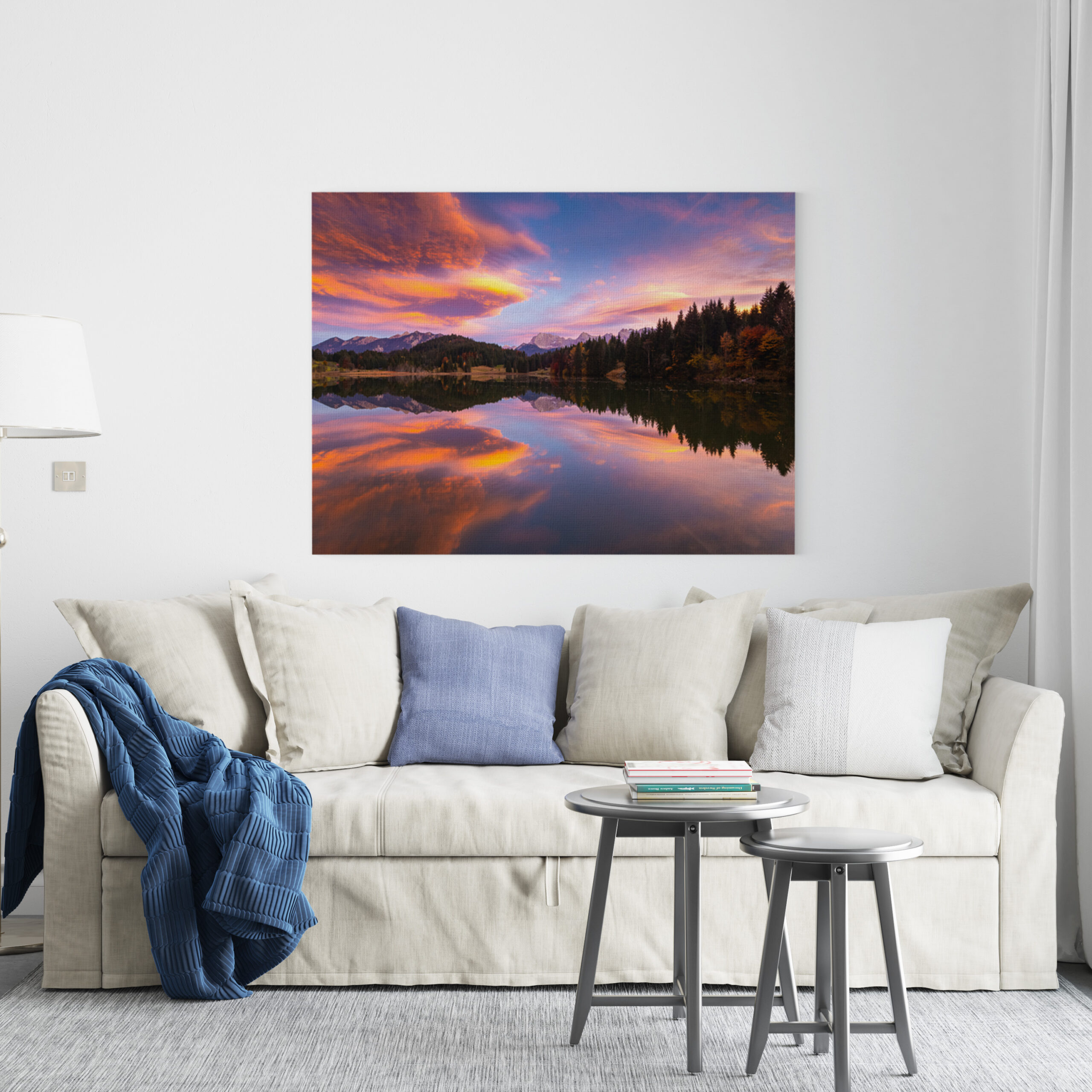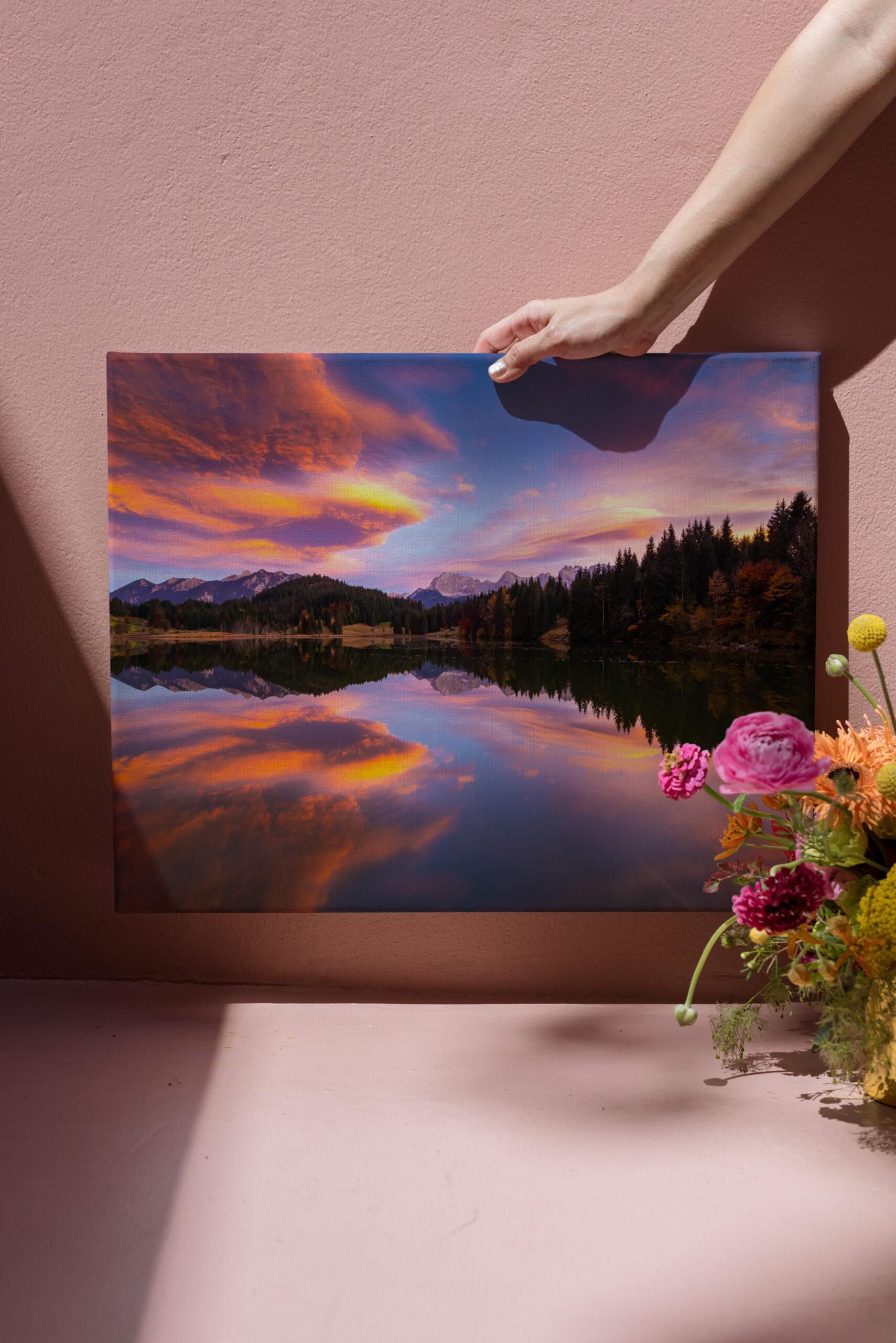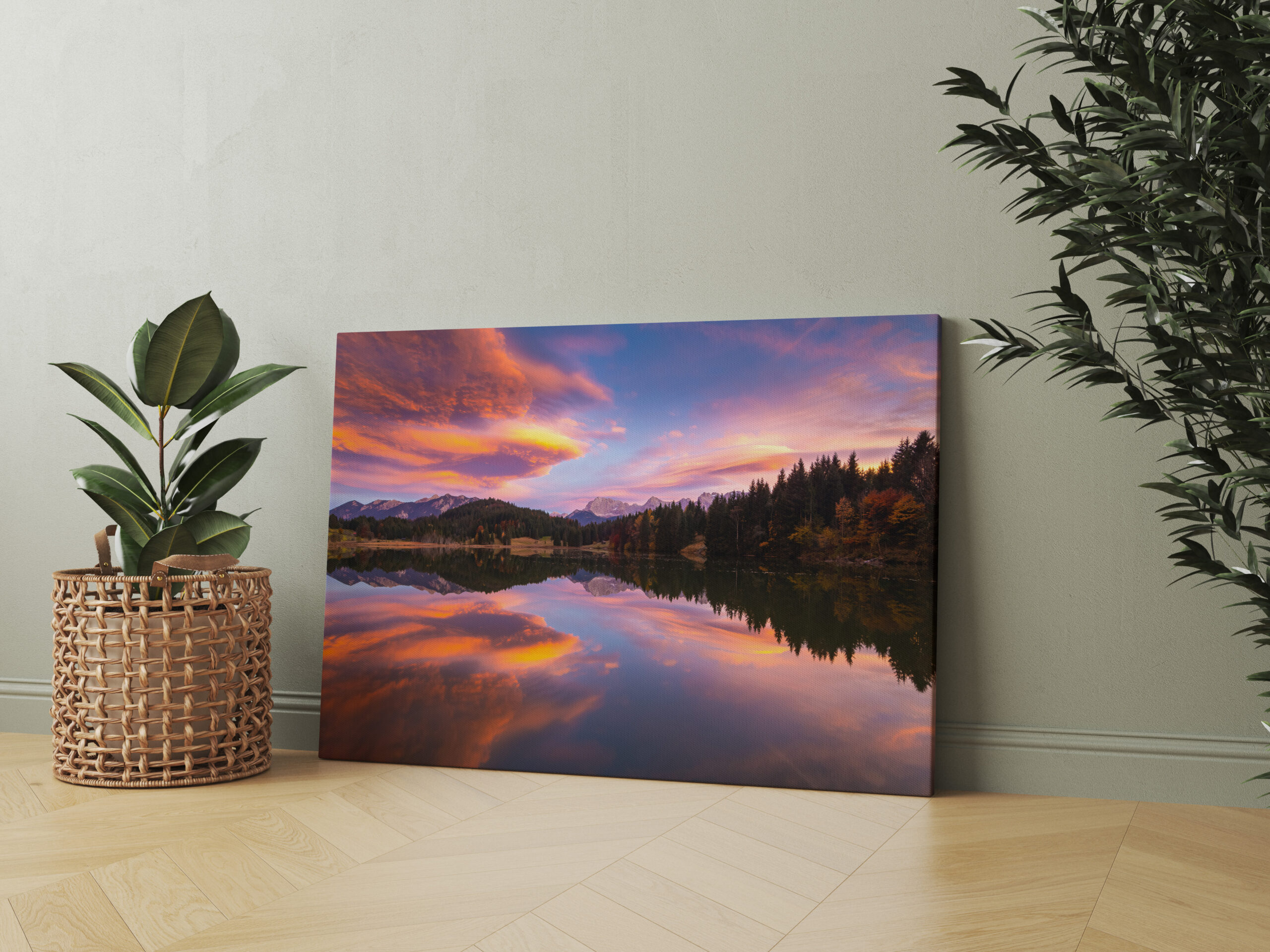 Un coucher de soleil époustouflant sur le célèbre lac et les montagnes du Karwendel