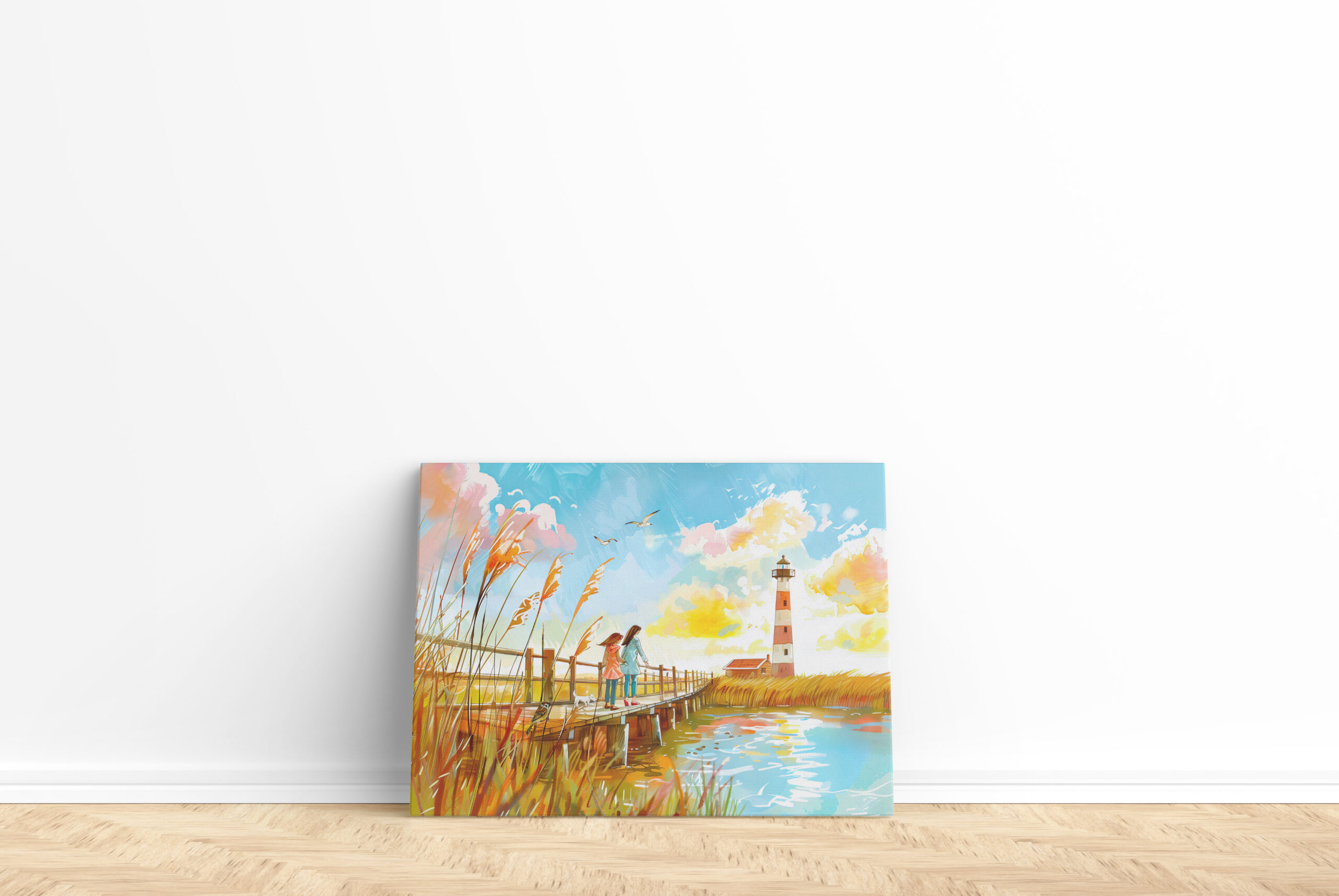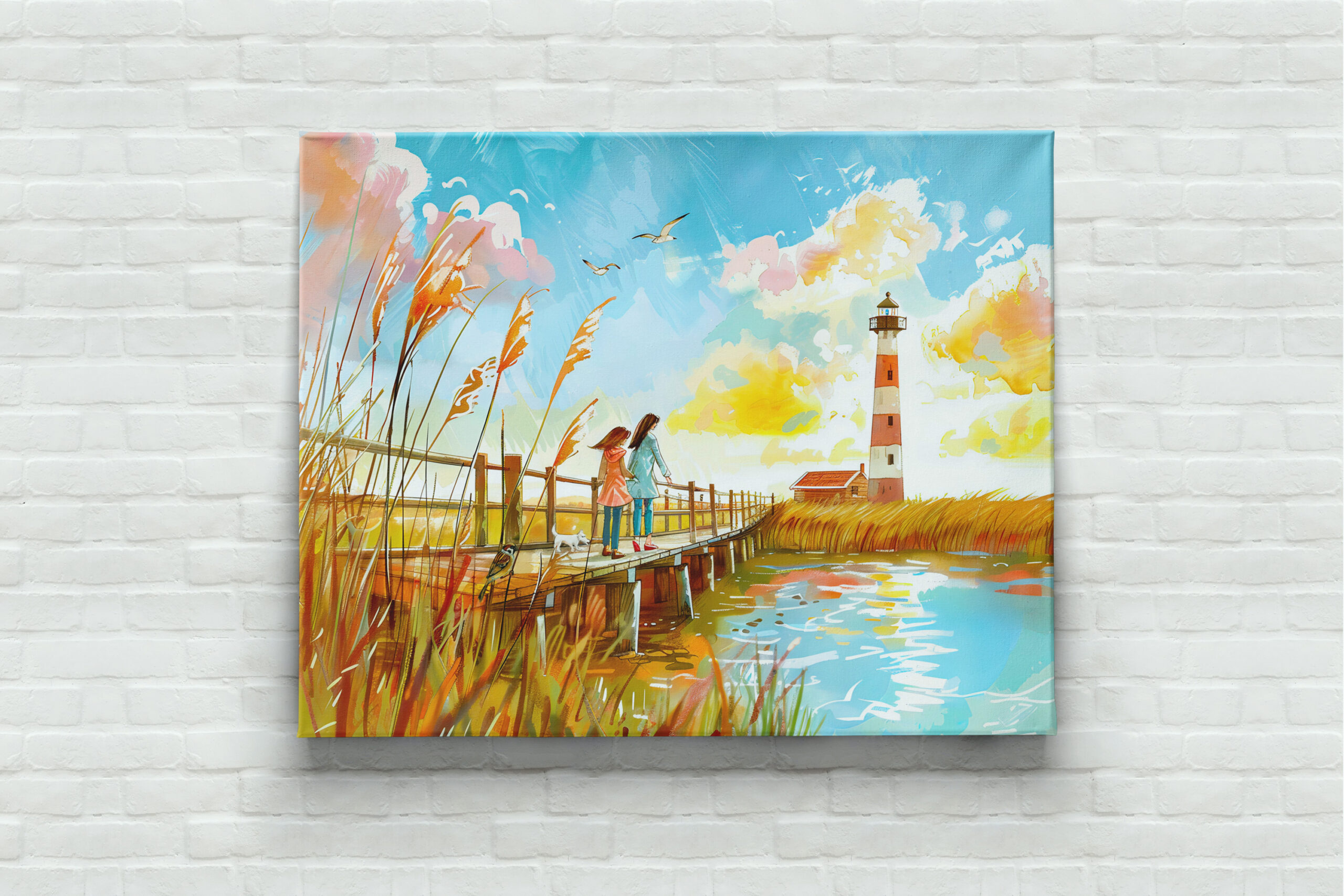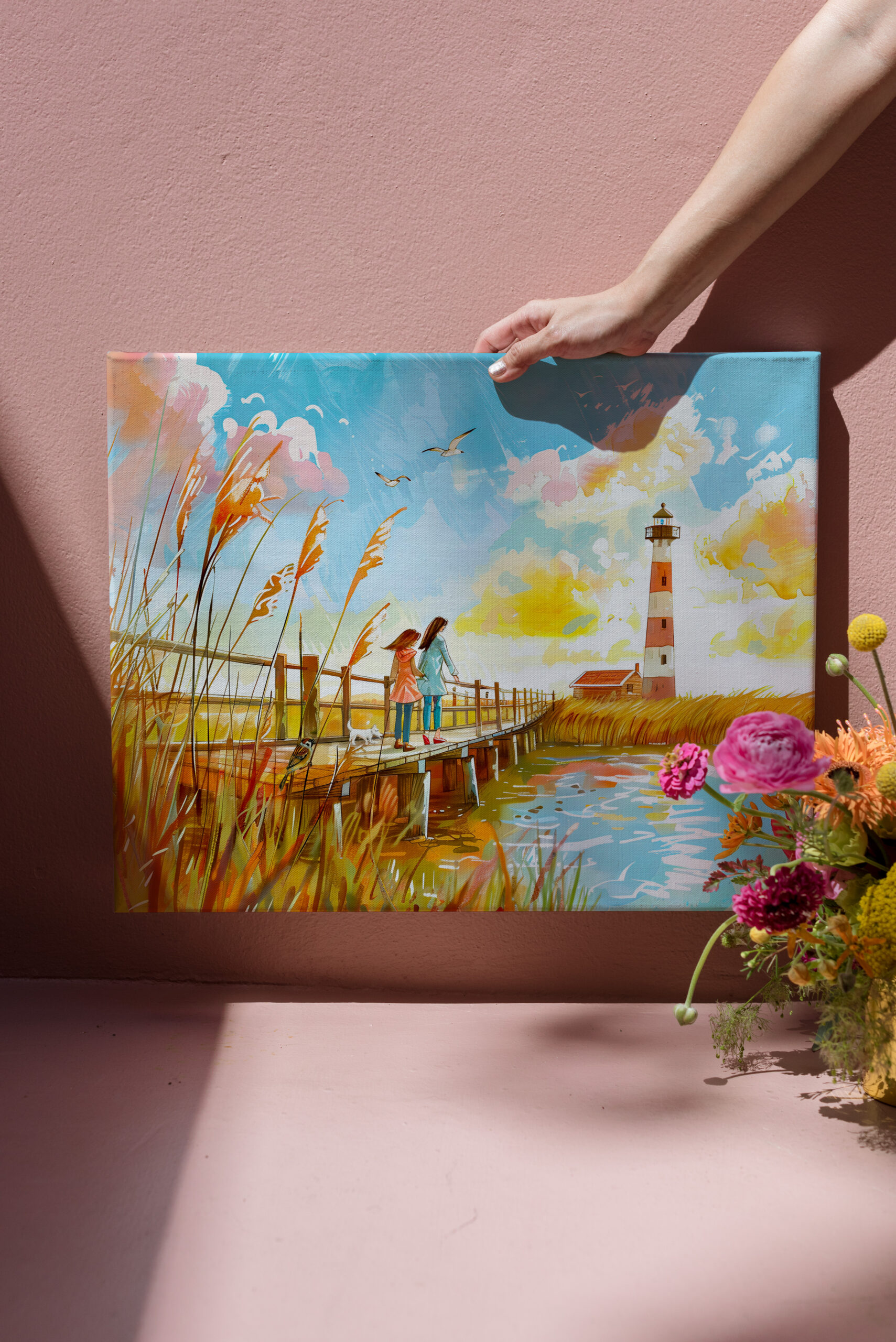 "watercolor painting Girls and Dog by Lighthouse Shore" by Anja Frost