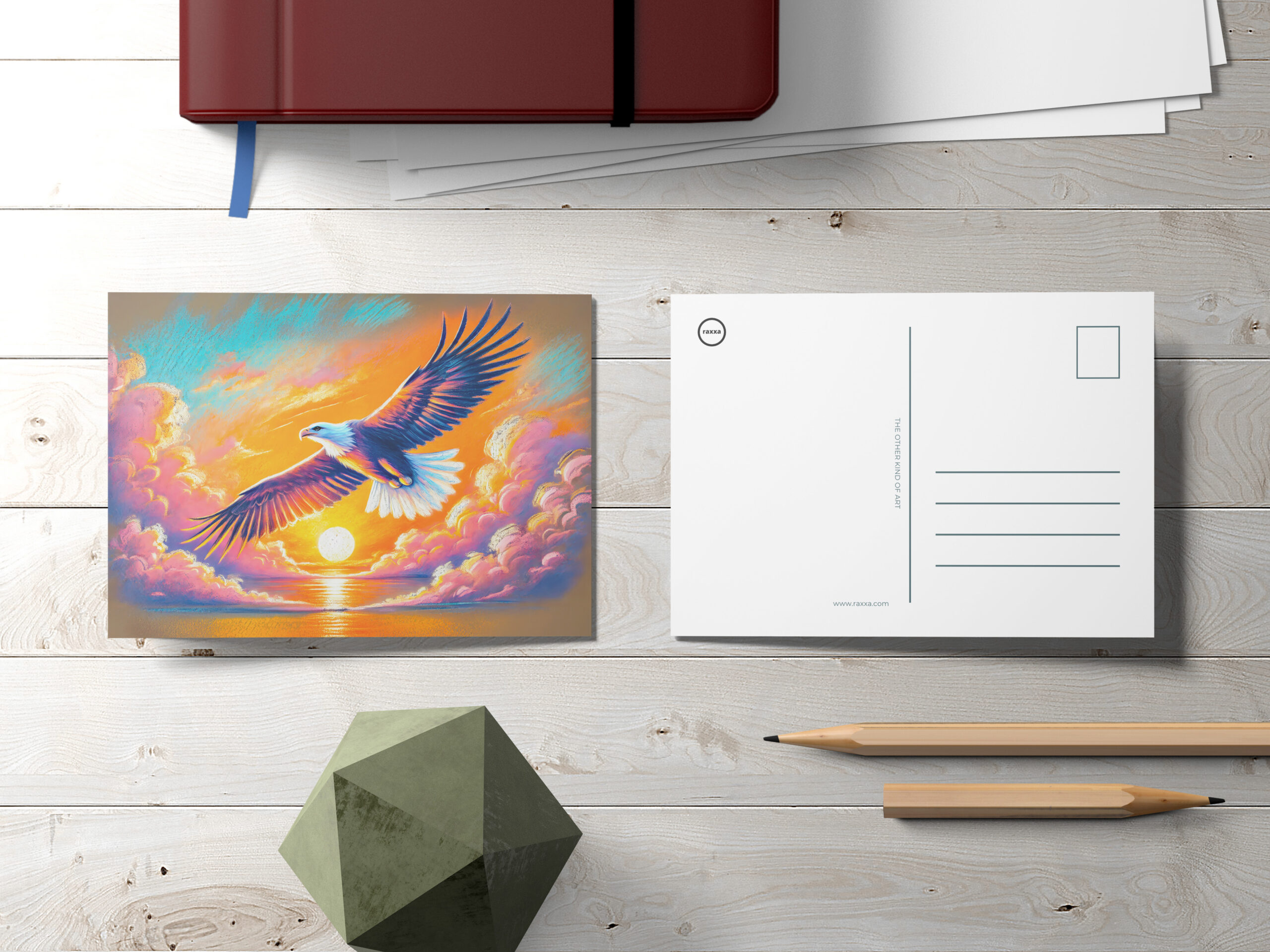 eagle flies gracefully against the warm hues of a setting sun. This pastel chalk drawing beautifully captures the serenity of evening and the freedom of the eagle in flight