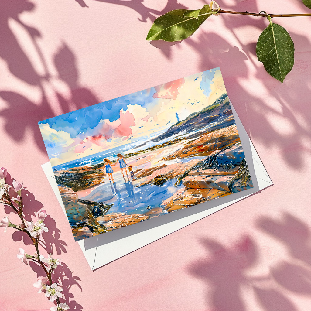 Soyez le premier à laisser votre avis sur “raxxa Postkarte: Girls and Dog by Lighthouse Shore watercolor painting”