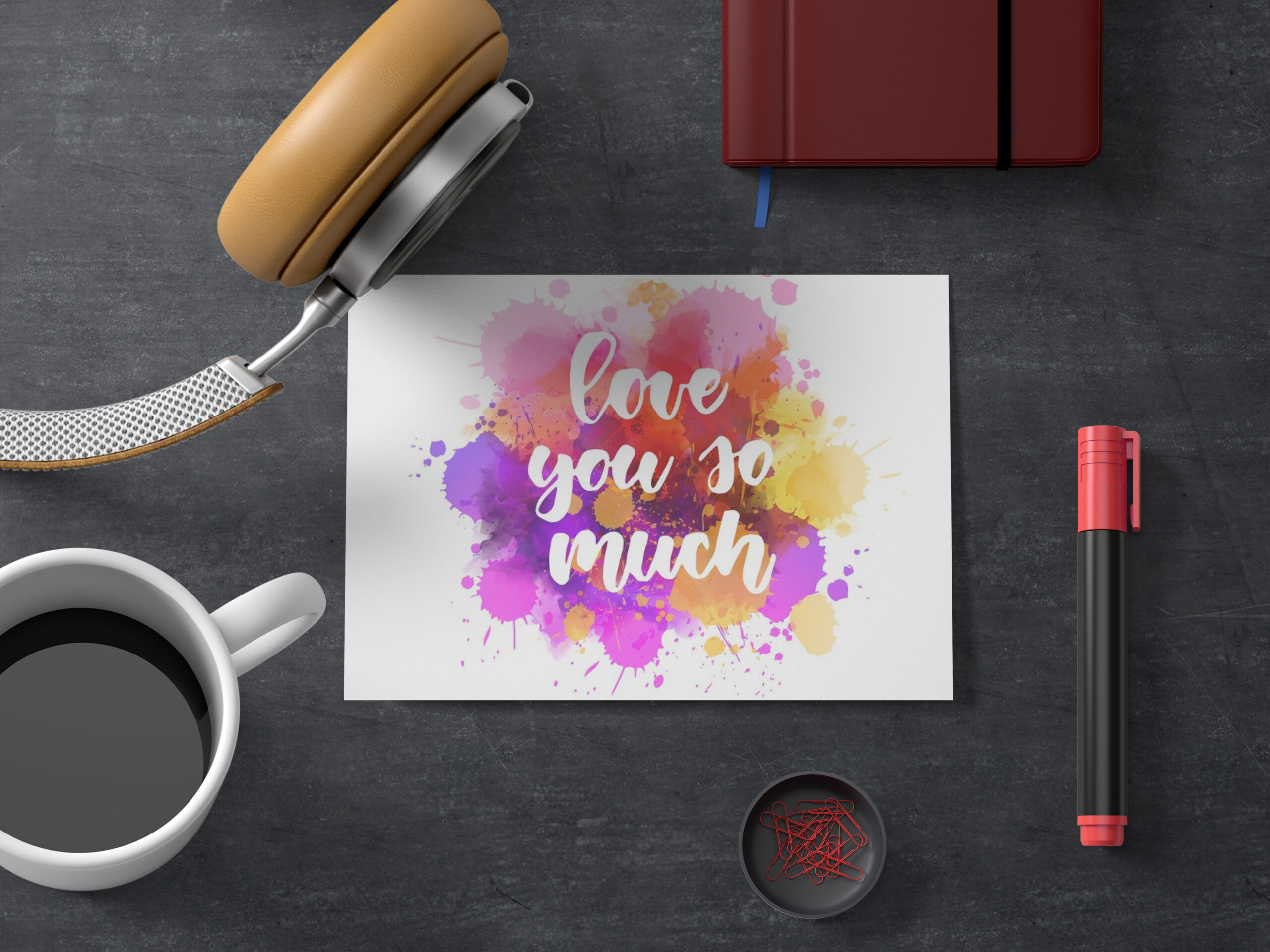 Je t'aime tellement. Écriture calligraphique moderne écrite à la main Texte sur aquarelle multicolore Éclaboussures de peinture.