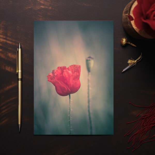 Image d'ambiance d'un coquelicot rouge ouvert et fermé
