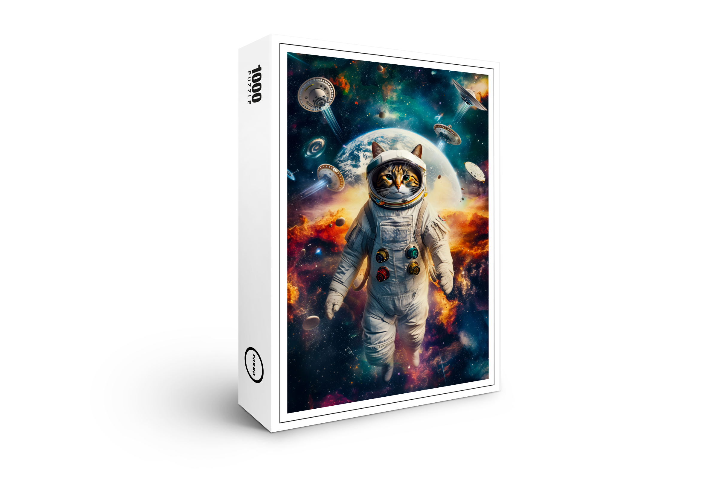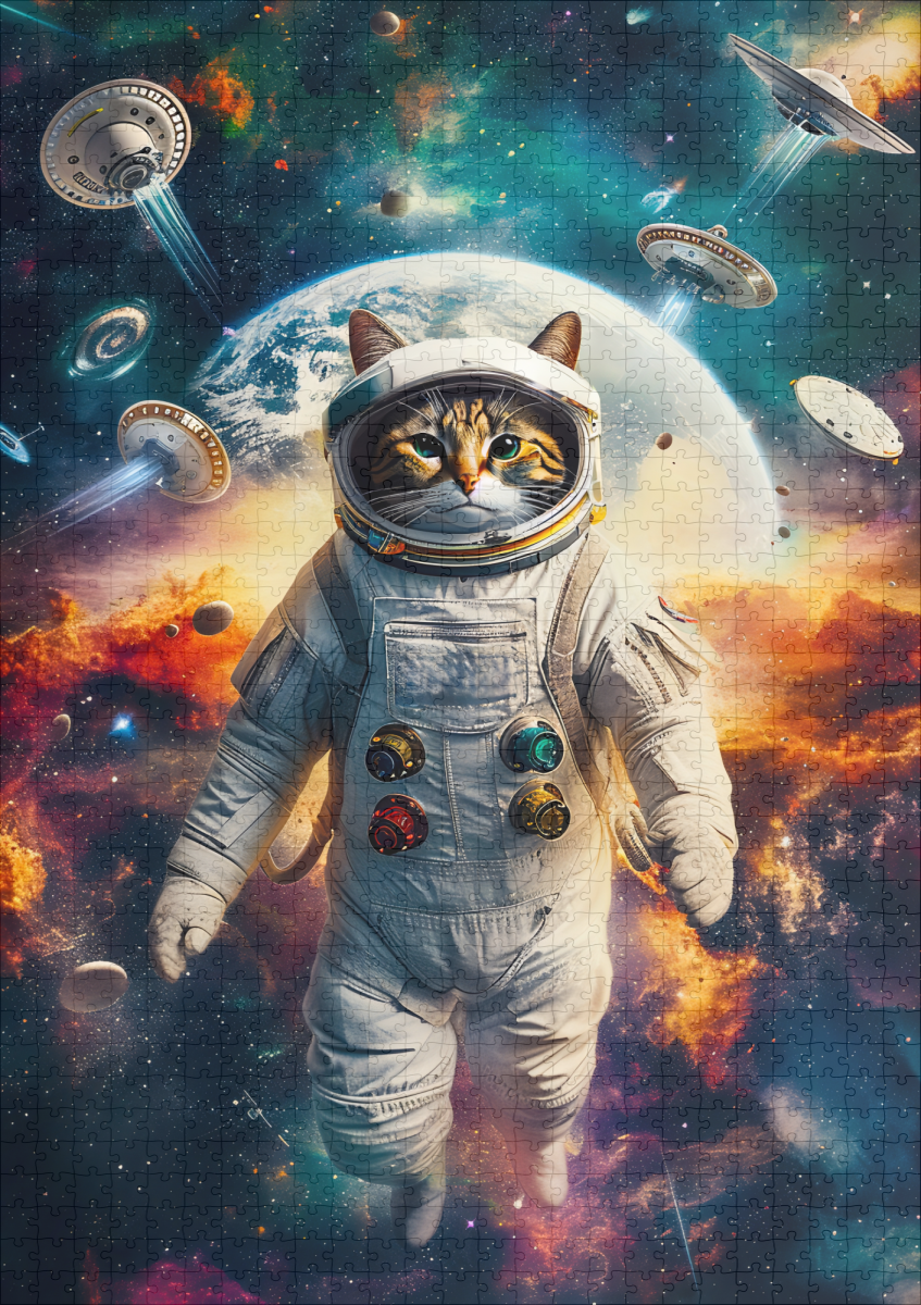 adventurous cat dons an astronaut suit, exploring the vastness of outer space