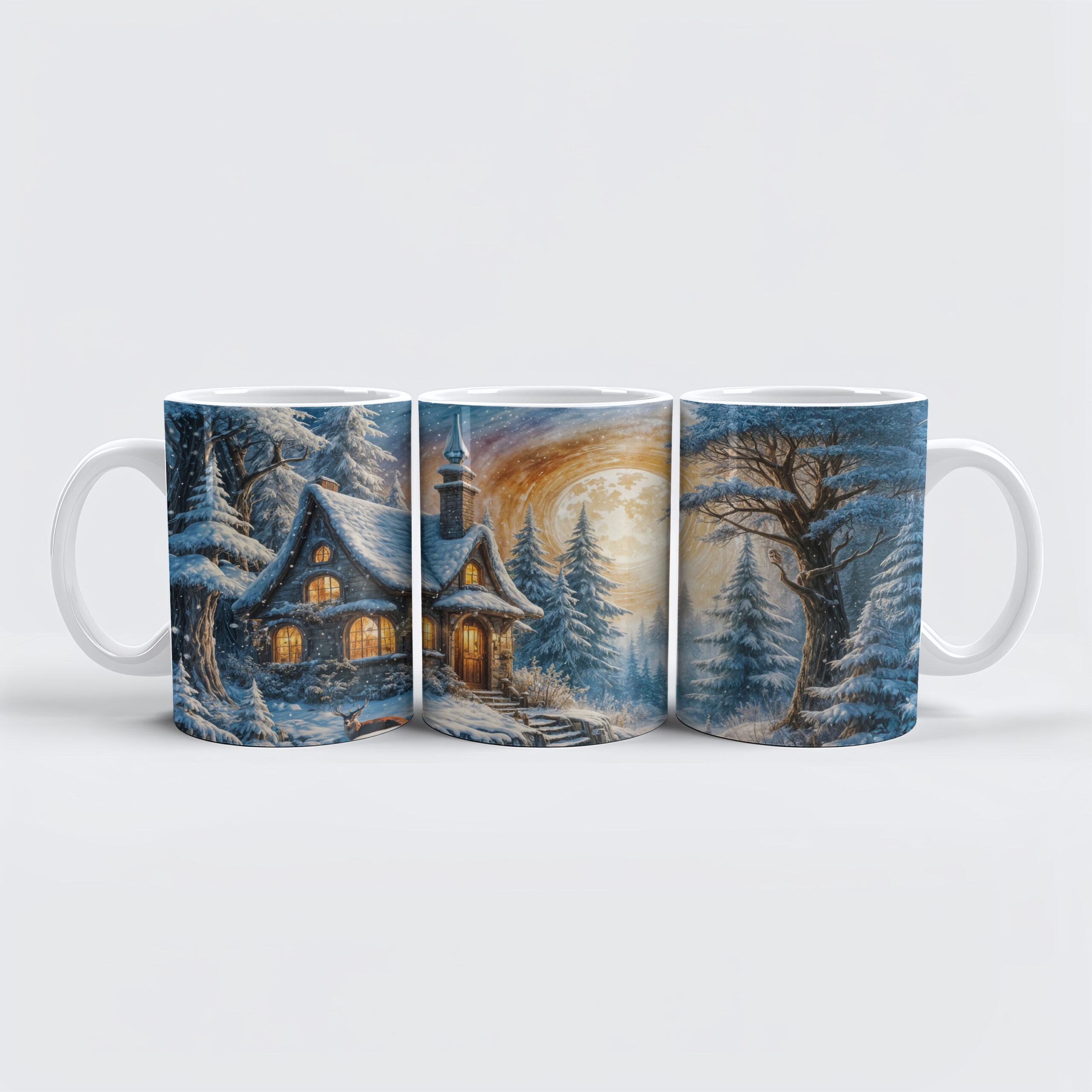 "Enchanting Winter Cottage in Moonlight" by Anja Frost