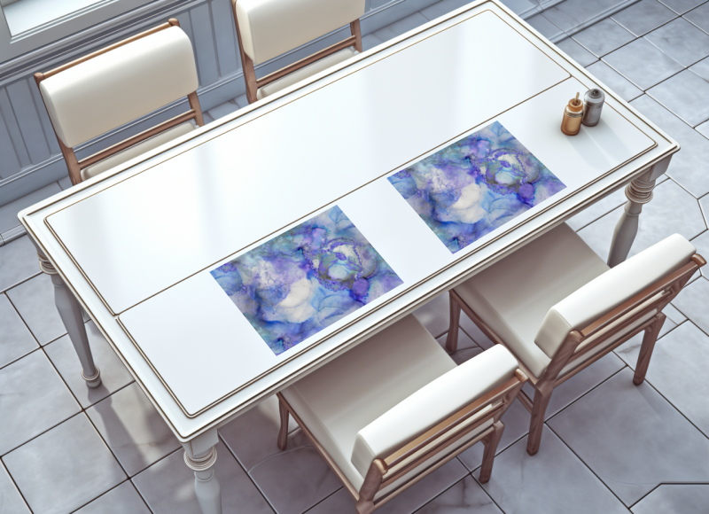 Charmant motif créé à partir d'encres d'alcool peintes à la main en nuances de bleu et de pourpre avec un bel effet marbré, parfait pour la décoration de la maison et la mode