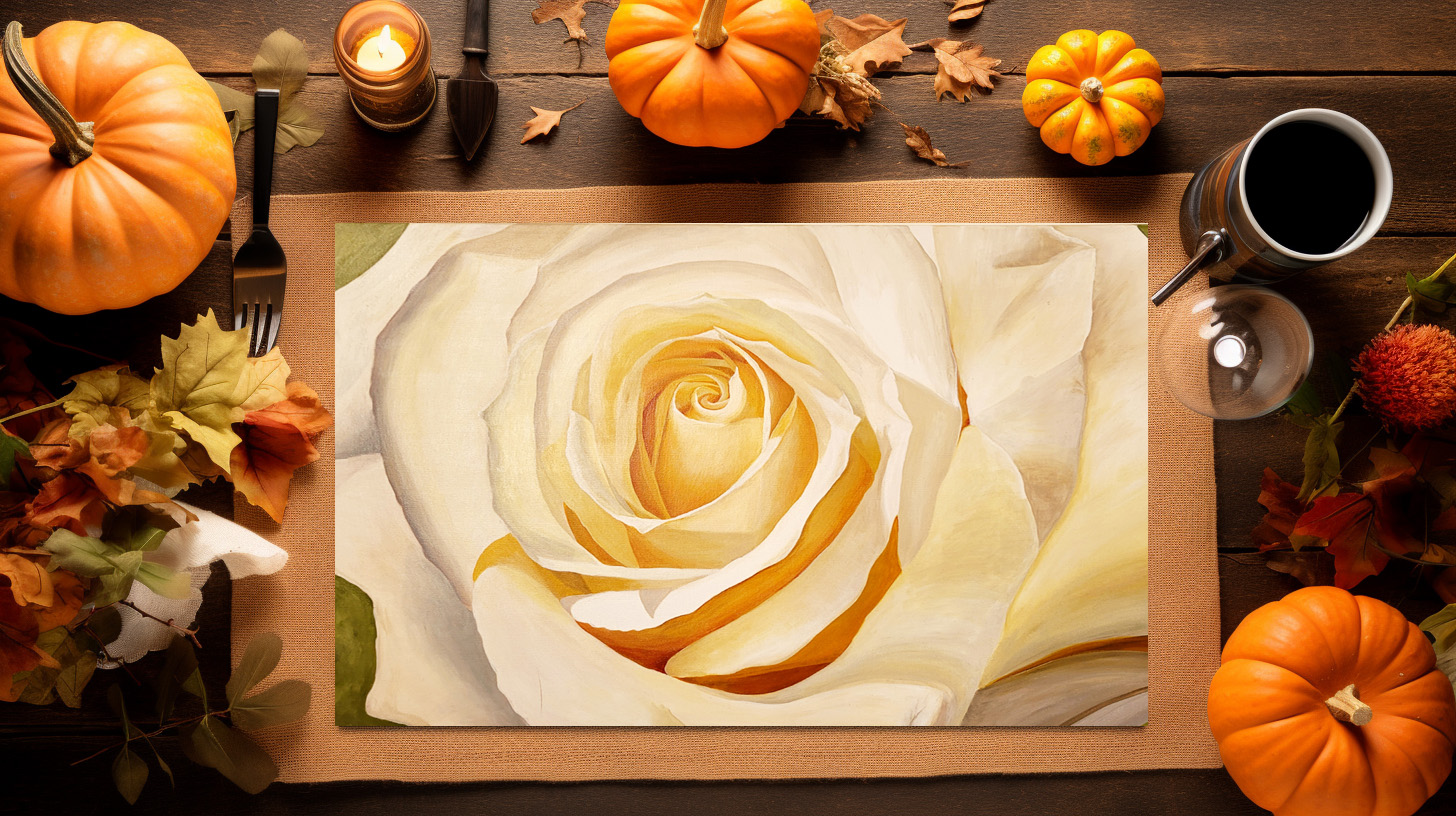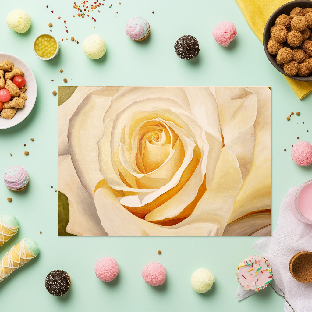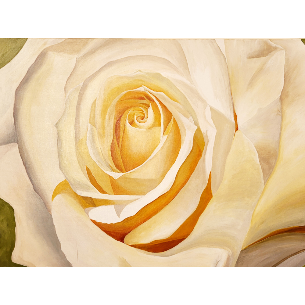 Elle incarne la beauté intemporelle, prise au moment de l'apogée de sa floraison. Chaque coup de pinceau témoigne d'un savoir-faire magistral, chaque pétale respire la grâce et la délicatesse. Les douces nuances du jaune de Naples et du jaune indien se fondent avec le blanc en une danse harmonieuse de couleurs qui enchantent l'œil et touchent l'âme. Cette représentation classique d'une rose dégage un charme intemporel et apportera une touche de glamour et de style à toute maison élégante. Un chef-d'œuvre véritablement envoûtant, destiné à être admiré et aimé.