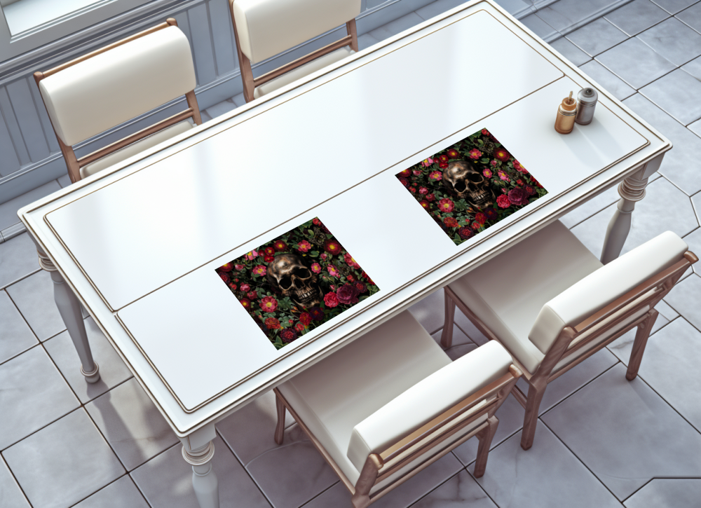 Un design vintage, qui capture parfaitement l'atmosphère sombre et évocatrice, combine habilement un noir somptueux et érodé par les intempéries avec un mystérieux motif de skull et des roses vintage délavées. Les skulls, avec leurs détails en filigrane, semblent provenir d'époques révolues et contribuent à l'esthétique morbide. Les roses fanées, d'un rouge bourgogne profond, contrastent fortement avec l'obscurité et confèrent au design un romantisme mystérieux qui captive l'œil et touche l'âme. Ce design vintage moody avec skulls et roses dégage un charme unique et intemporel.