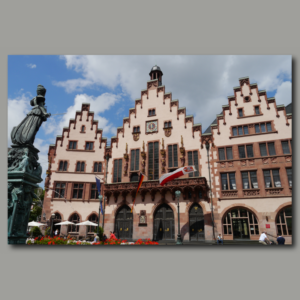 raxxa Cartolina: Francoforte sul Meno Römer con scultura Fontana della Giustizia
