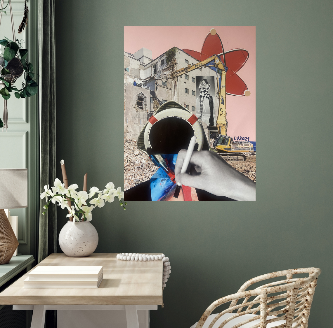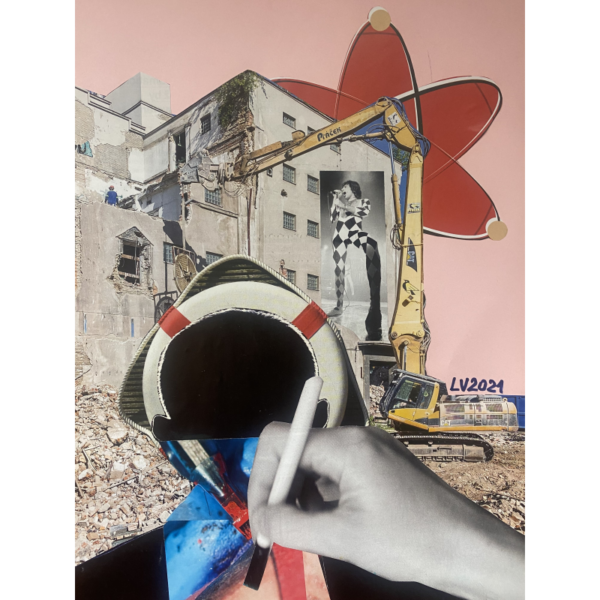 collage arte astratta tempo rosa