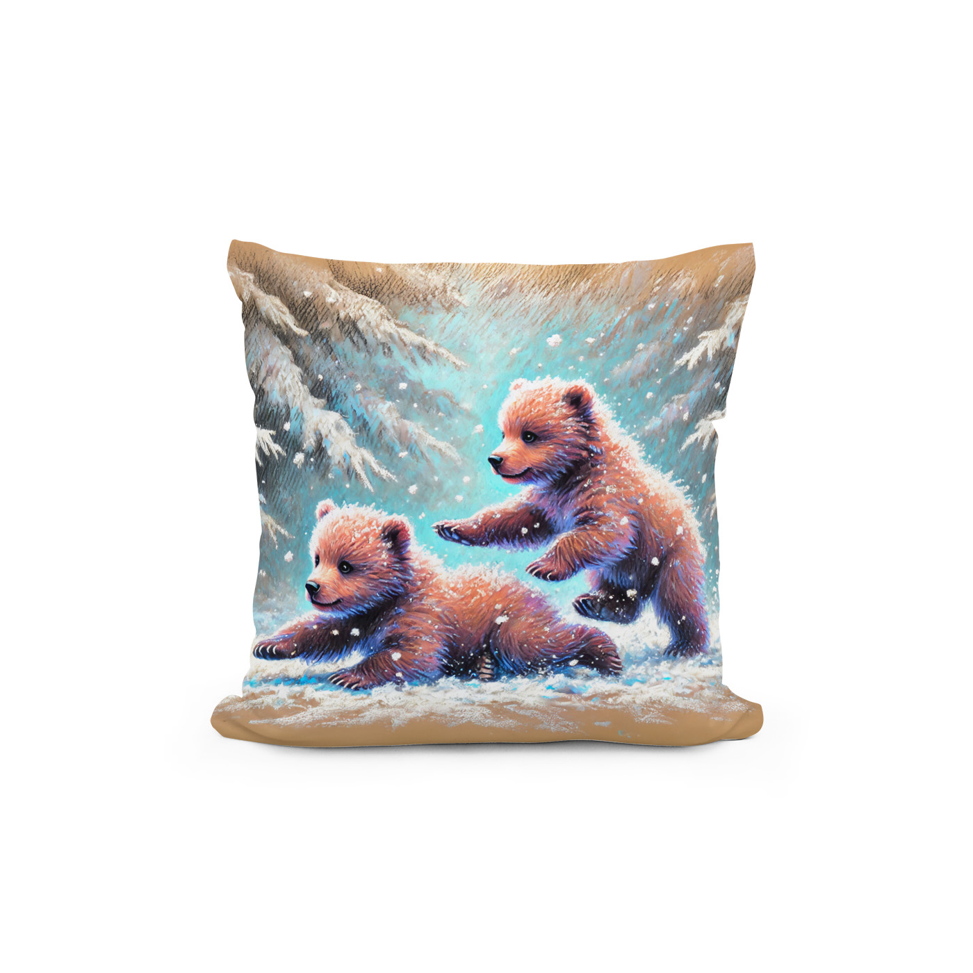 raxxa Premium Kissen Playful Bear Cubs in Snow Pastel Chalk Drawing