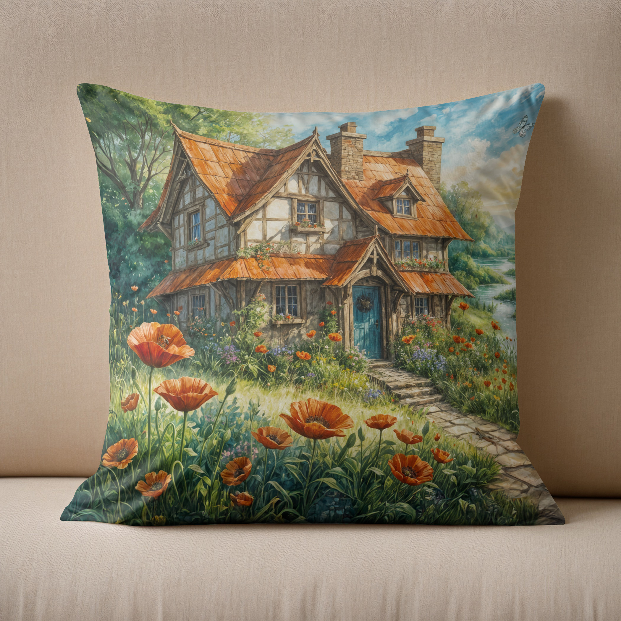 raxxa Premium Kissen Whimsical Cottage with Poppy Flowers