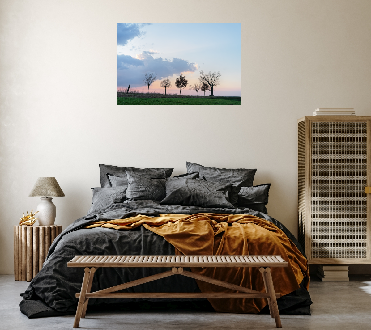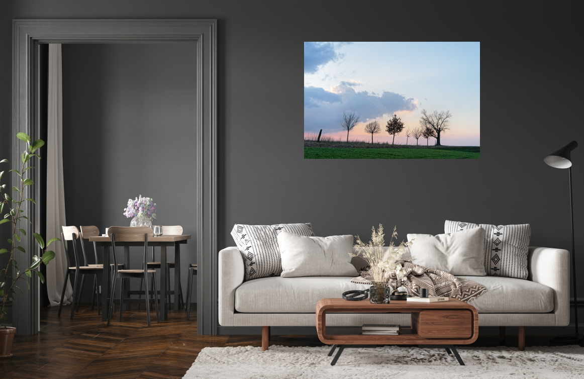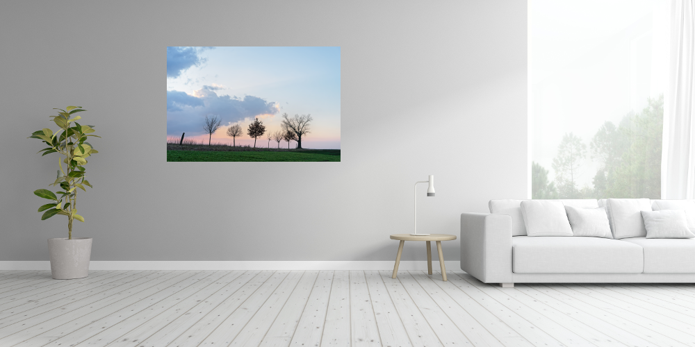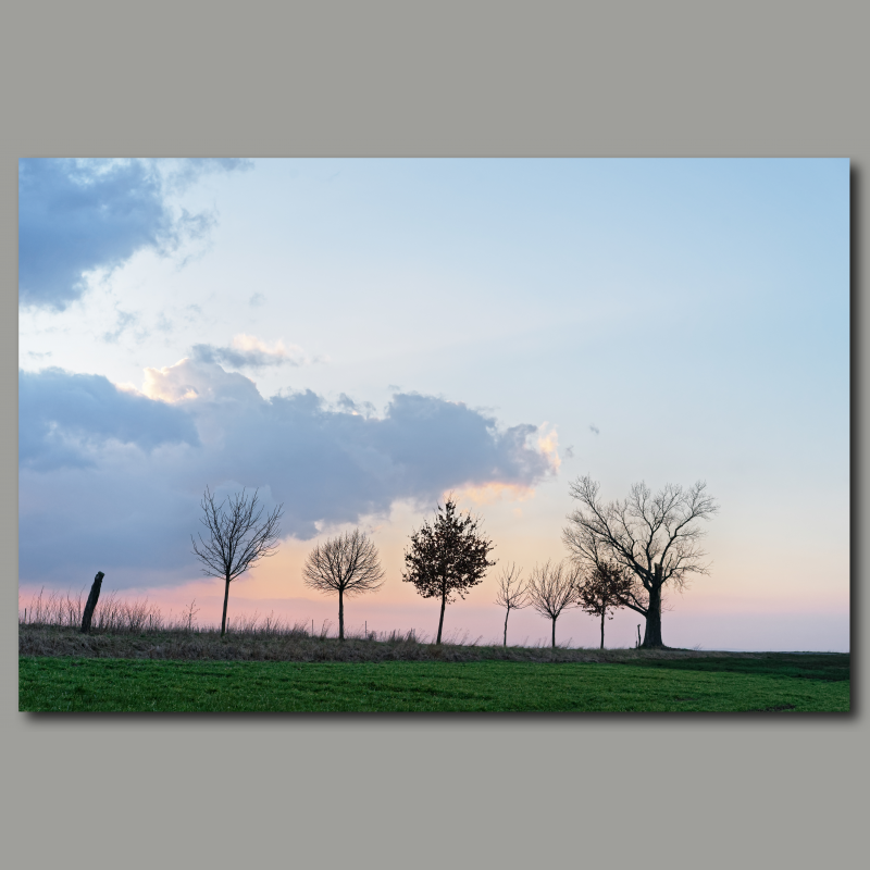 "Filare di alberi con una suggestiva formazione di nuvole nella luce della sera" di Ralf Lehmann