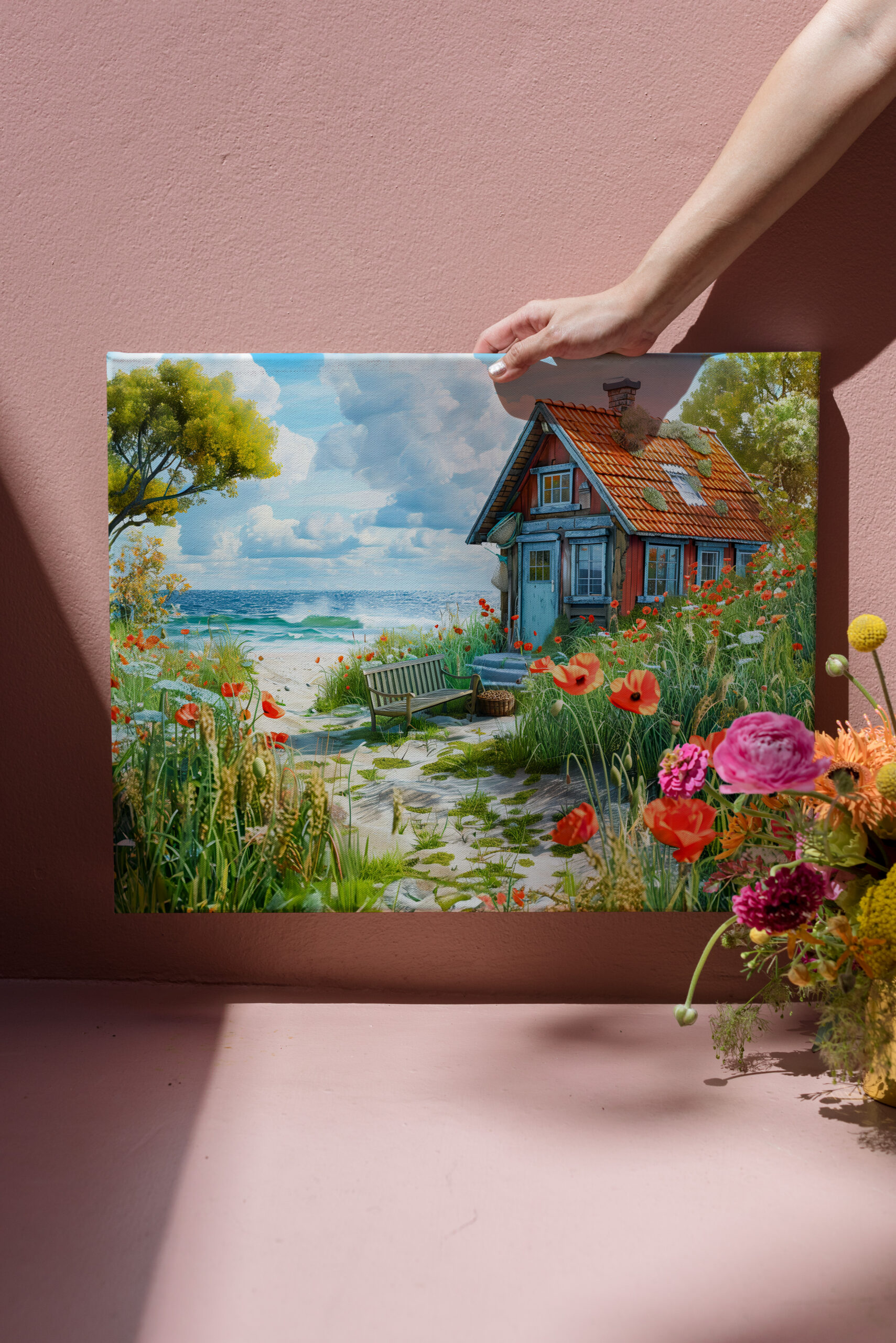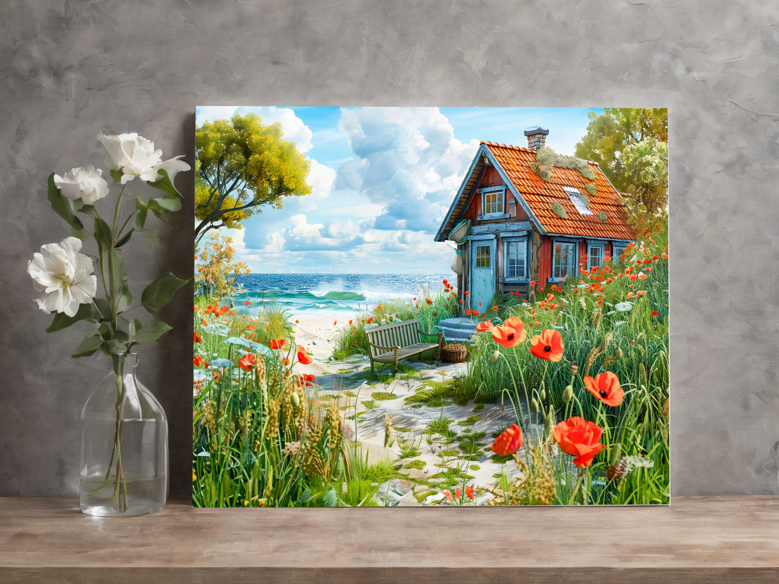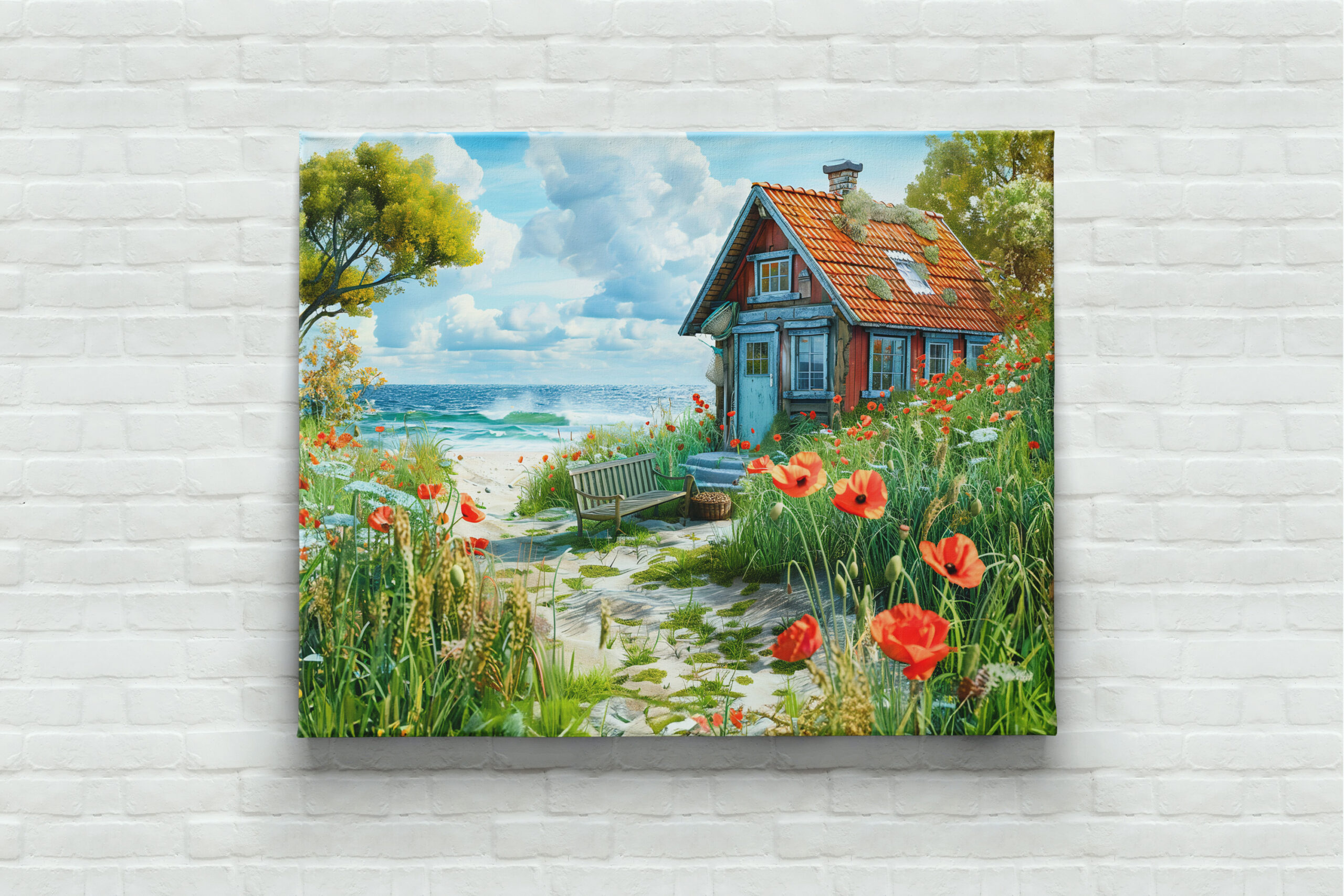 "Beach Cottage with Dunes and Poppies" by Anja Frost
