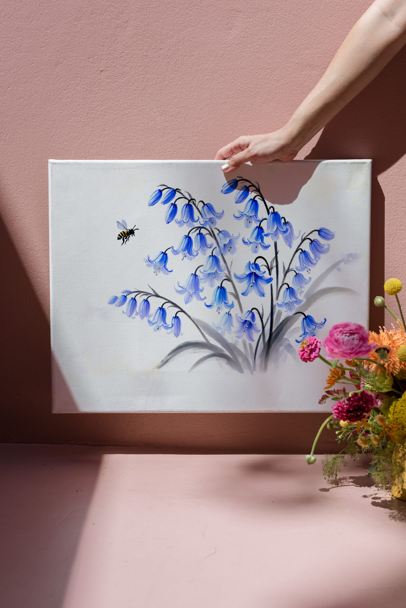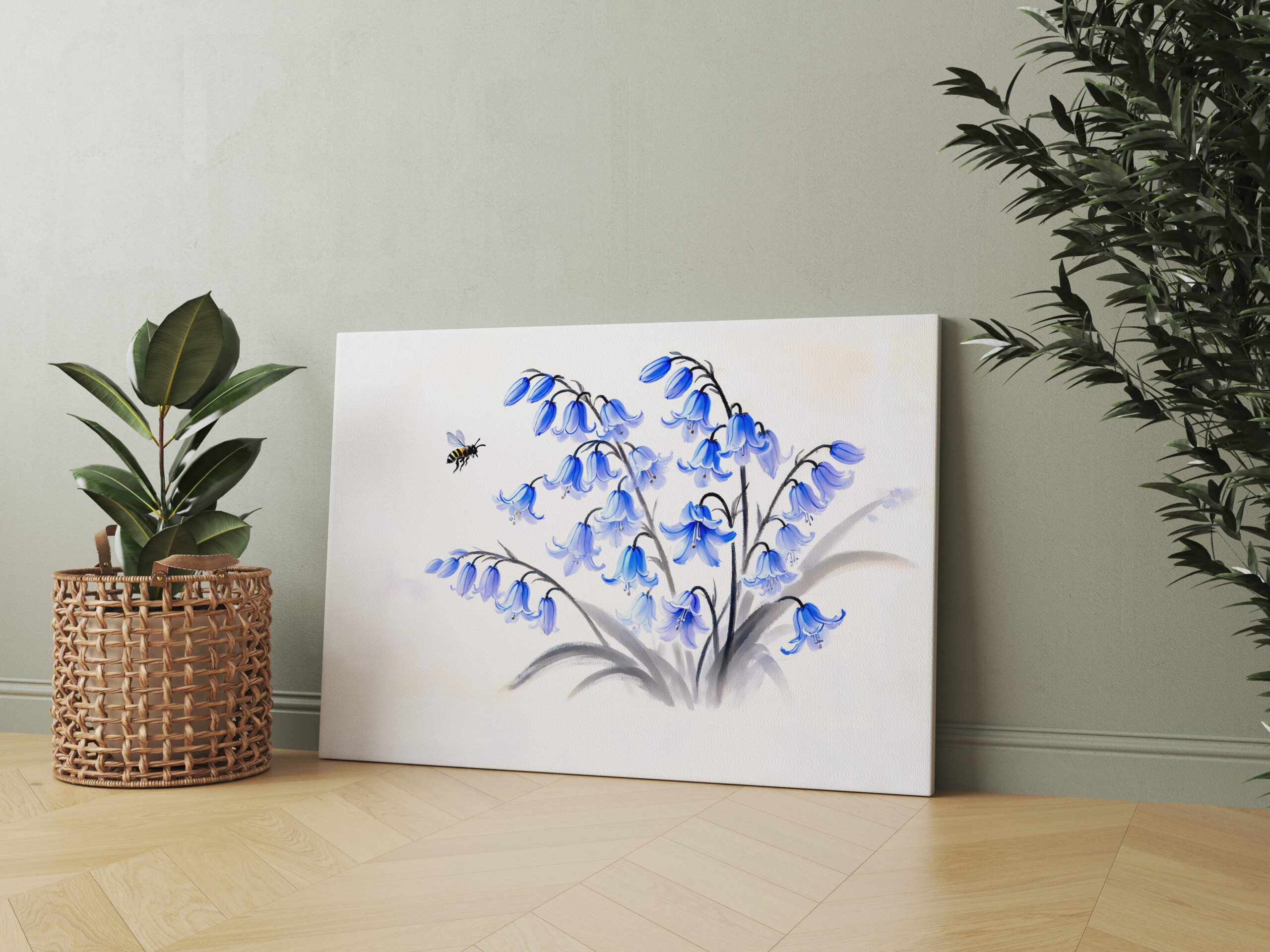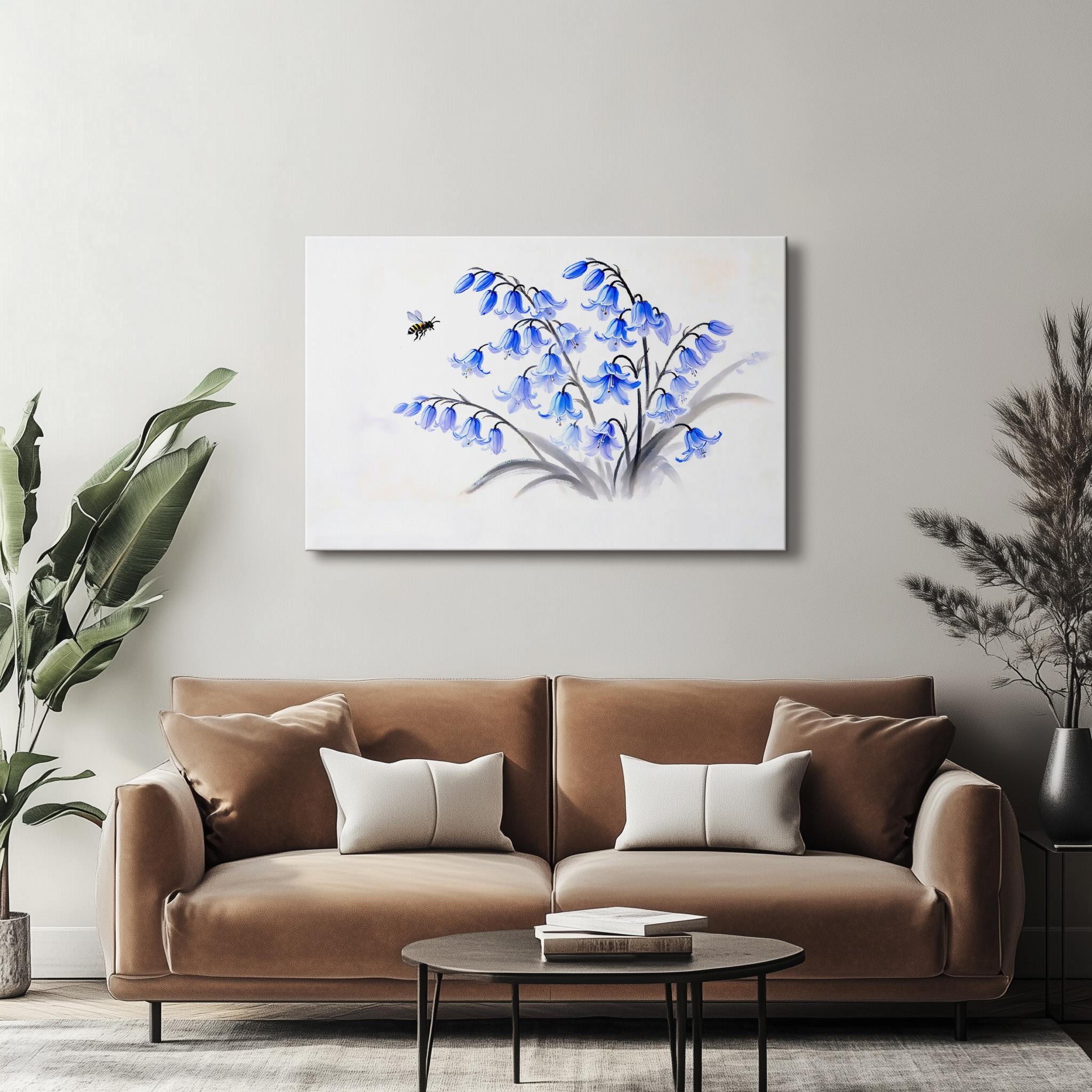 raxxa Canva: Blue Bellflowers Asian Ink Painting