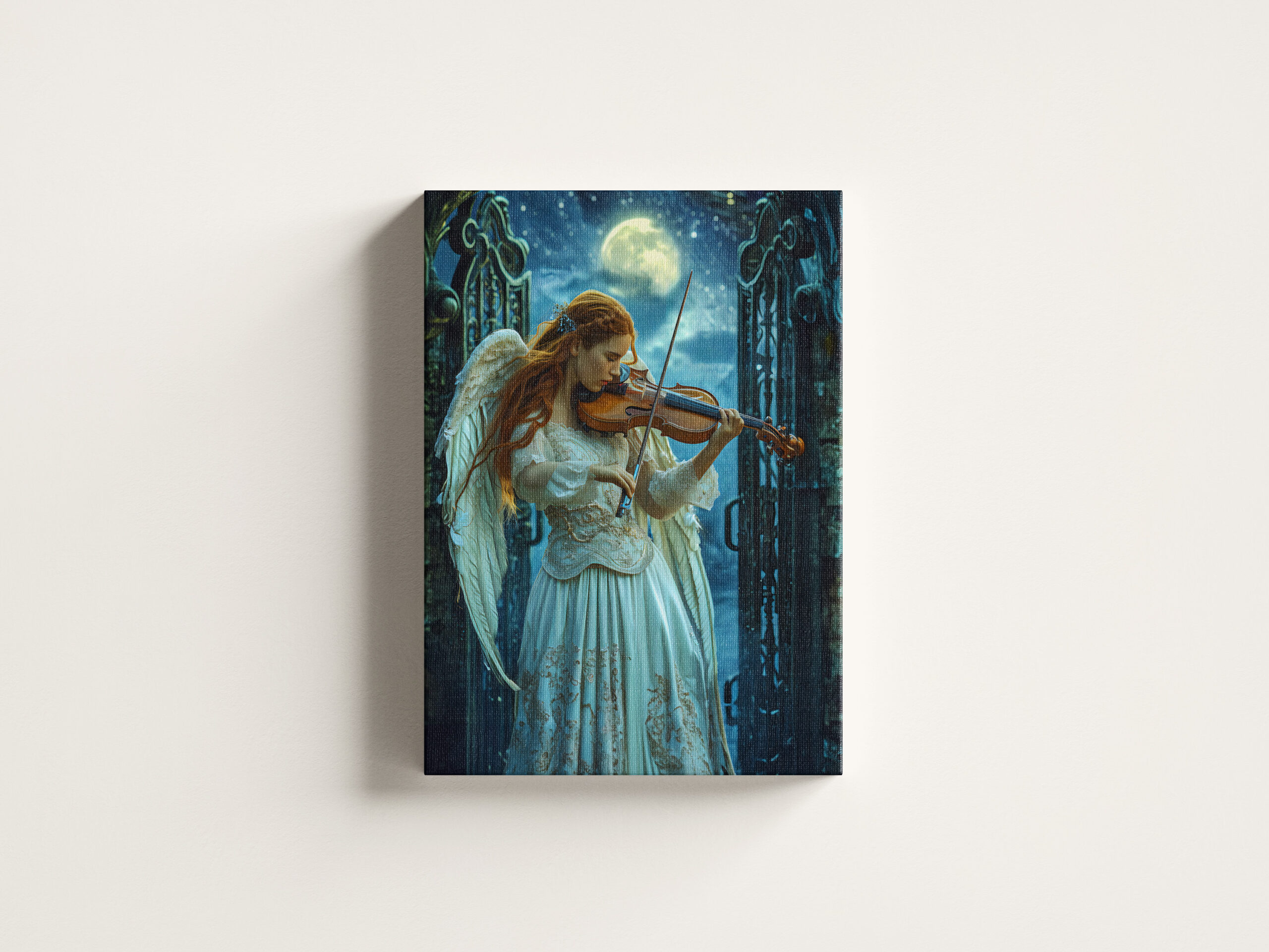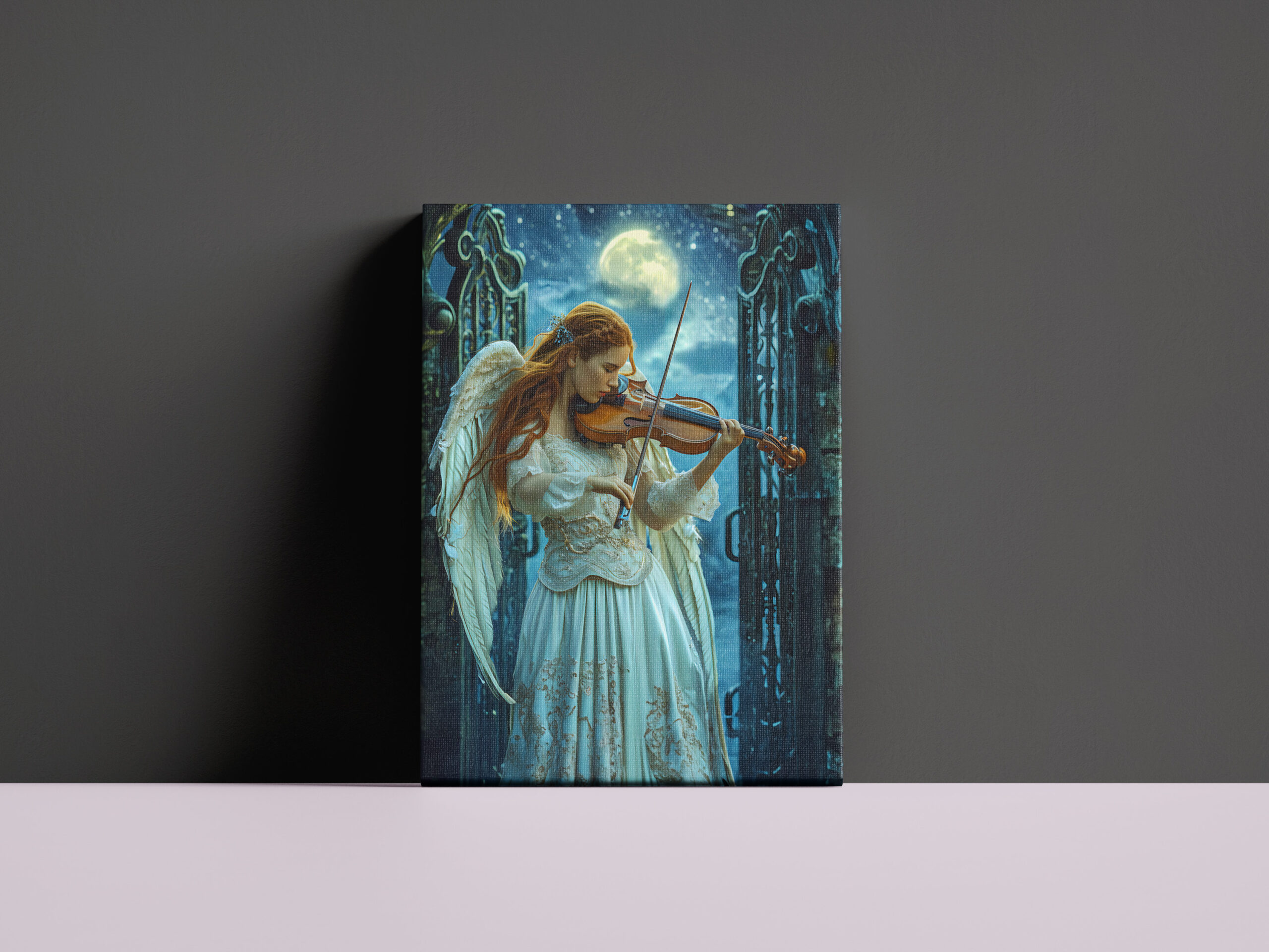 illustration featuring an angel gracefully playing the violin, creating celestial melodies that resonate with heavenly harmony. Immerse yourself in the ethereal beauty of this divine musical moment