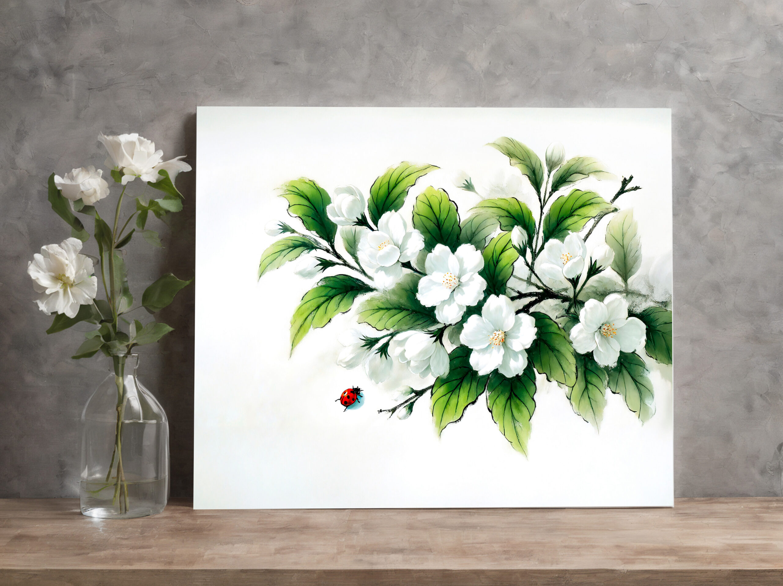 Fragrant jasmine blossoms in full bloom illustrated in the soft and elegant style of Asian ink painting A gentle expression of purity and natural grace