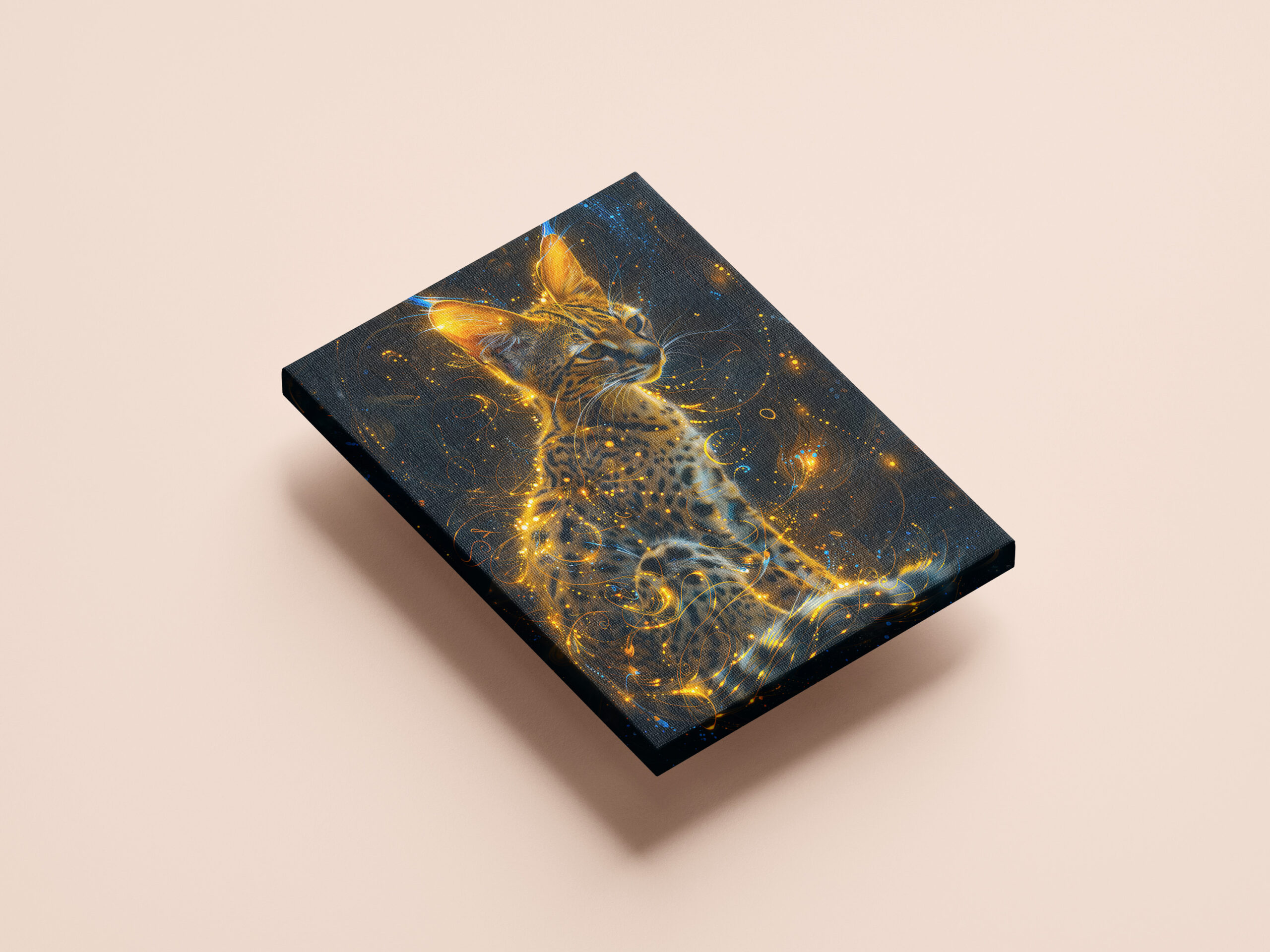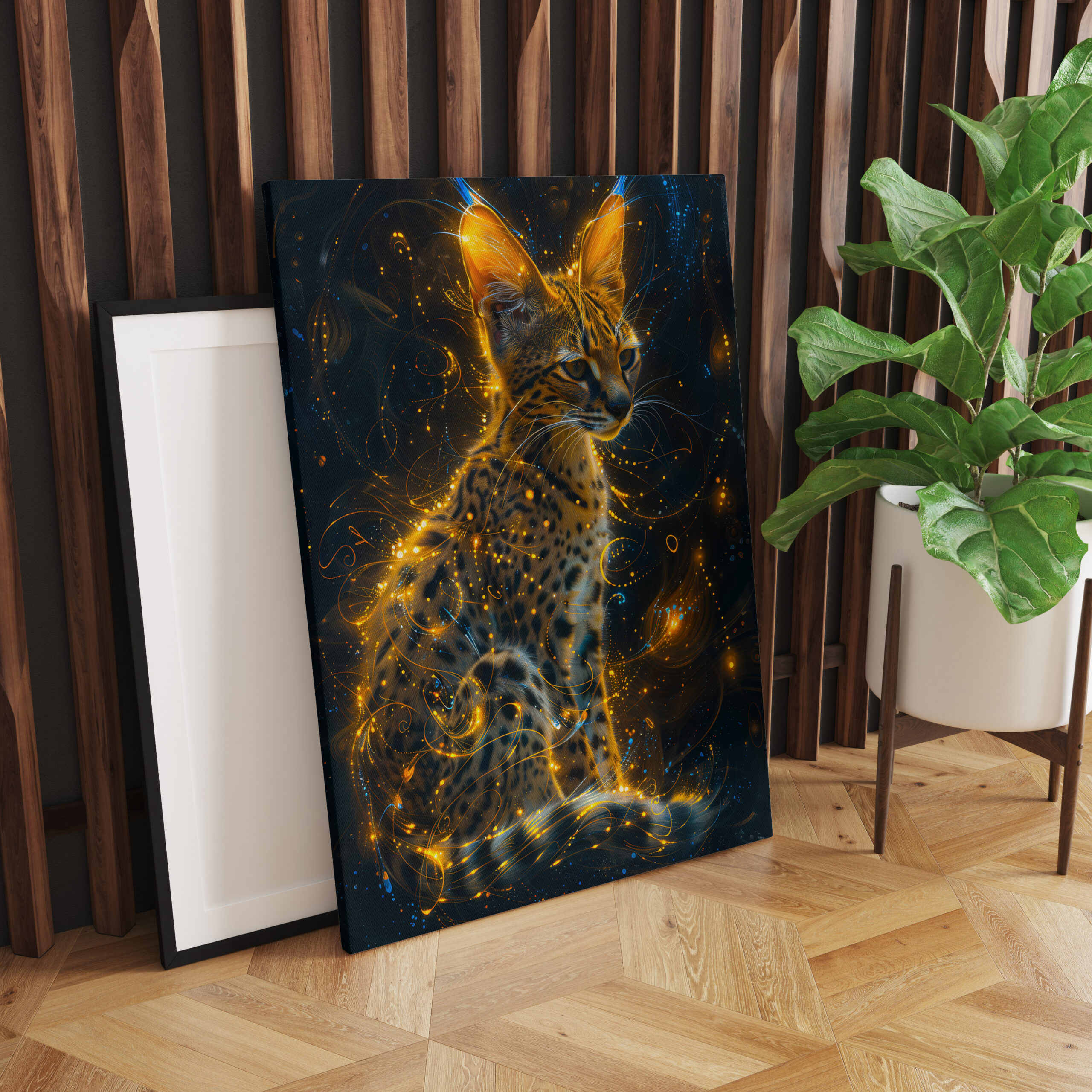 serval highlighted by yellowish neon light trails, creating a cosmic and captivating scene.
