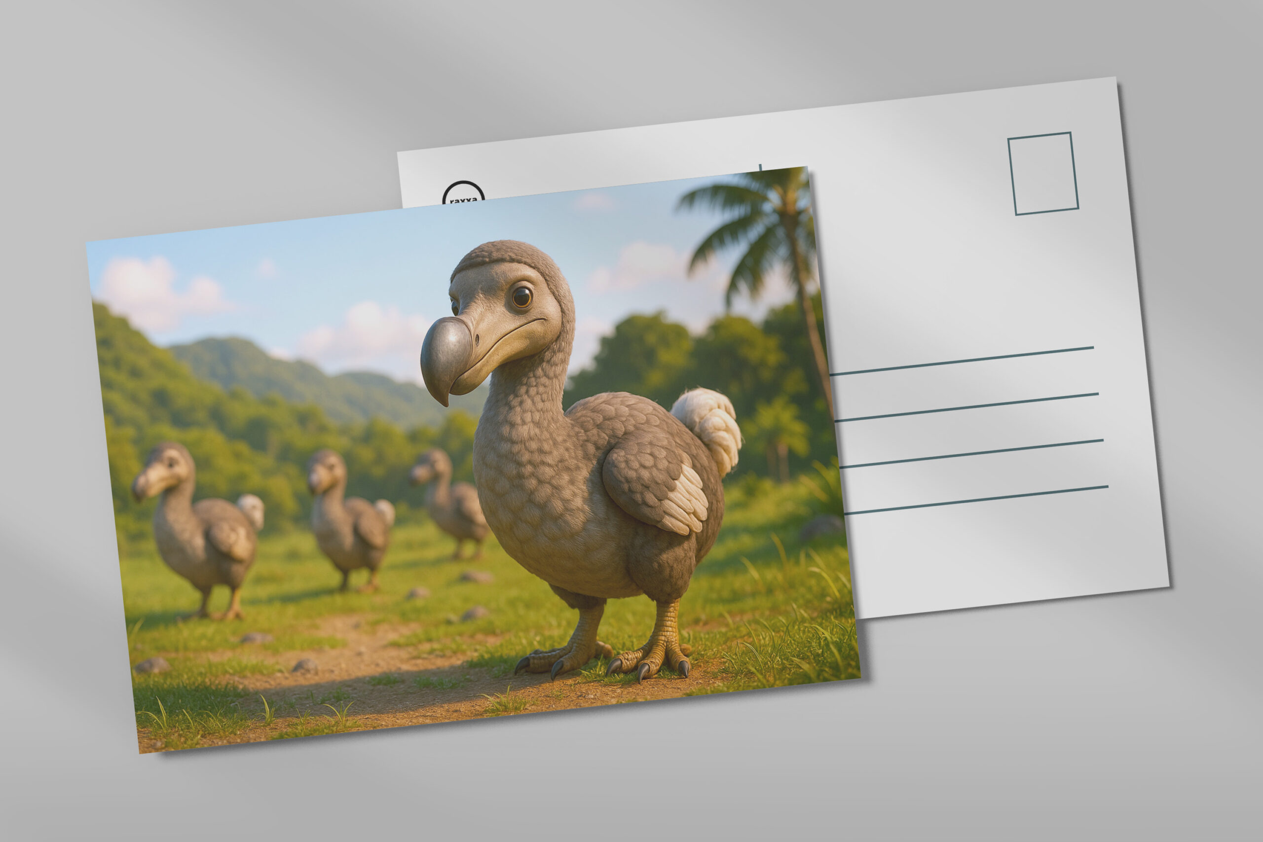 Der ausgestorbene flugunfähige Vogel Dodo oder auch Dronte genannt. Mit ein paar Artgenossen unterwegs