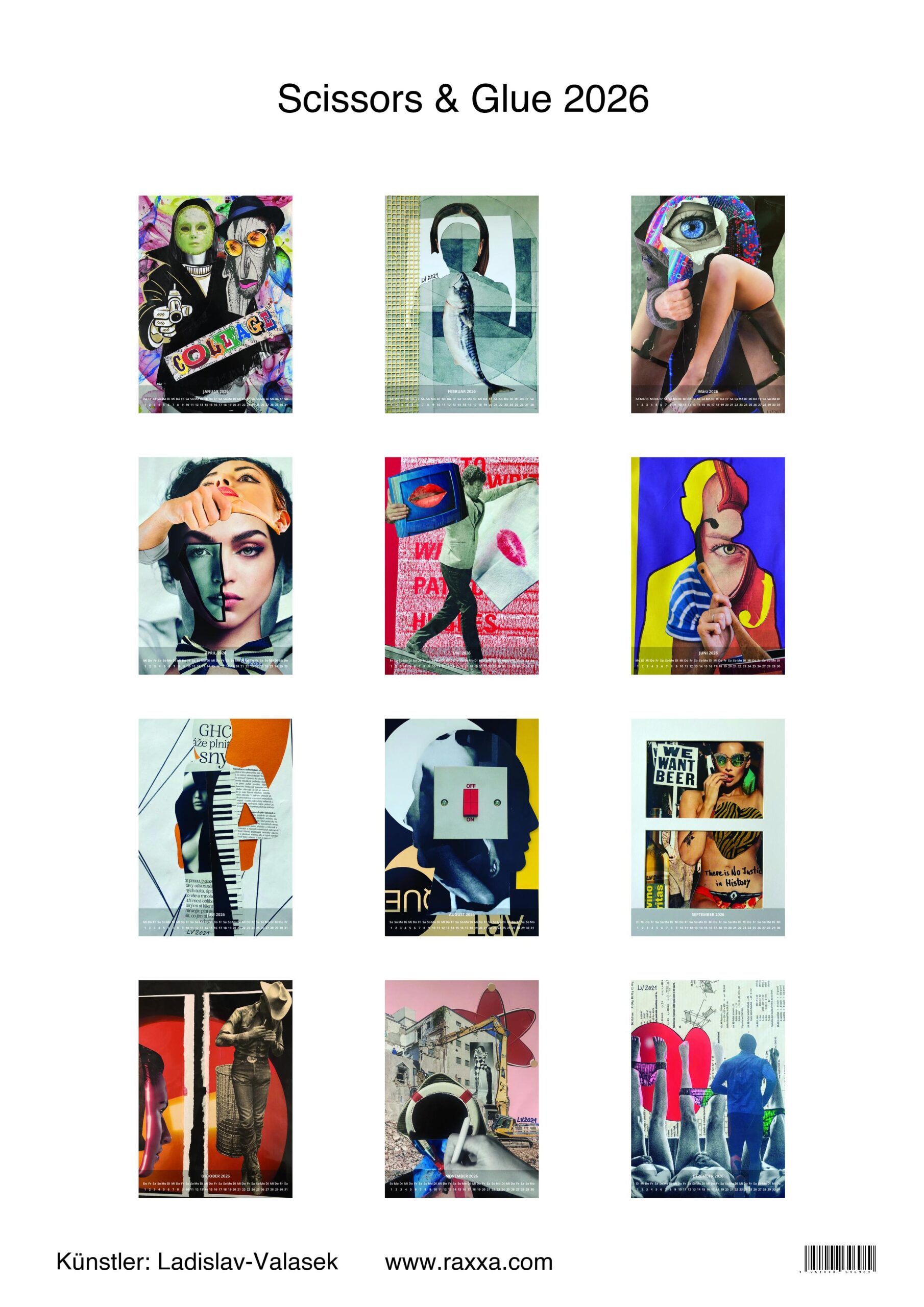 raxxa Premium-Monatskalender Scissors & Glue 2026 by Ladislav Valášek