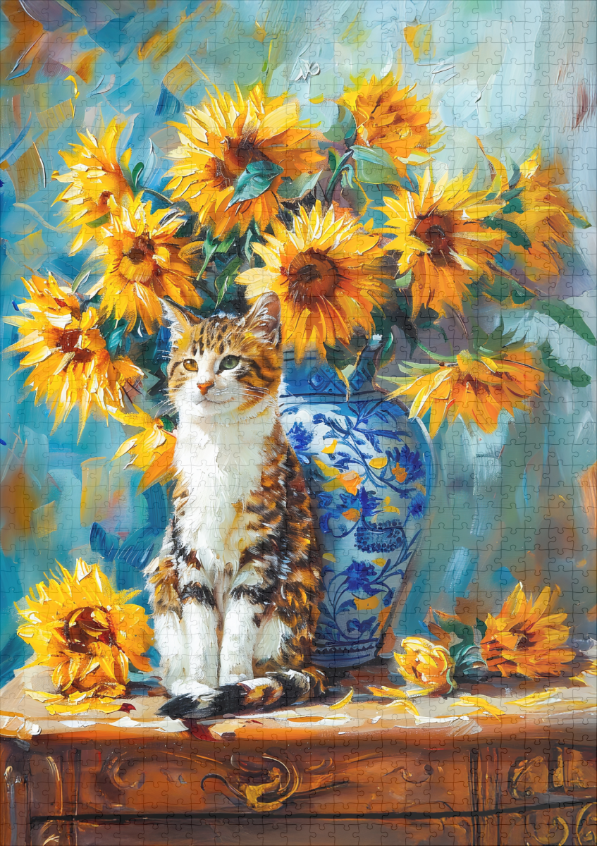 „Impressionistic Oil Painting of Cat by Sunflower Bouquet“ by Anja Frost
