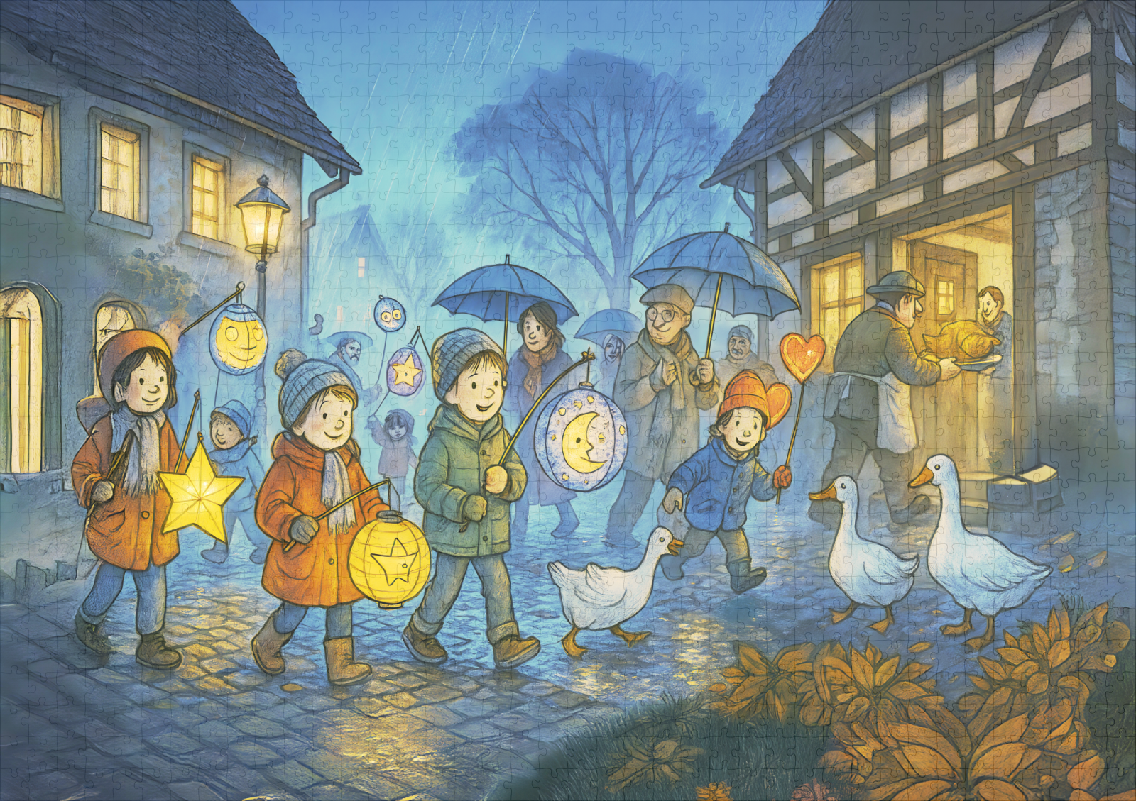 Join the enchanting lantern parade for St. Martins Day with geese. This magical scene captures the tradition and community spirit of this beloved festival