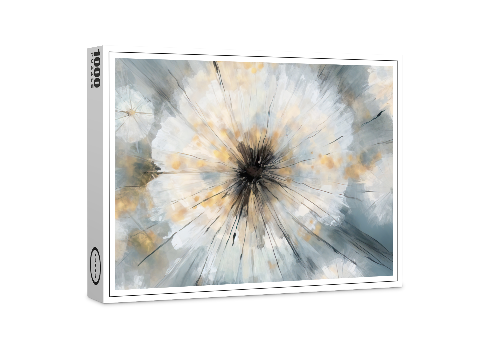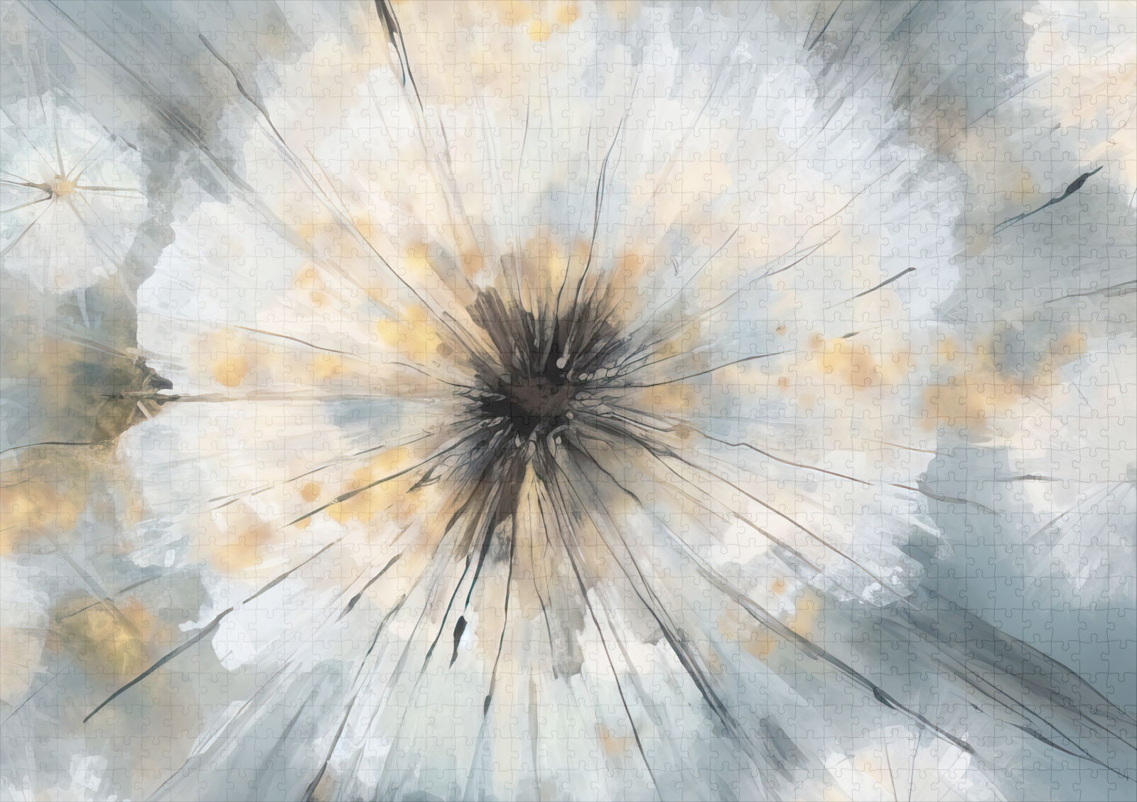 In questo moderno dipinto astratto di dente di leone, i luminosi denti di leone e i loro semi piumosi dominano uno sfondo minimalista di grigio tenue in controluce. I fiori sembrano quasi brillare e rompere la staticità monocromatica dell'ambiente circostante. I semi fluttuano uniformemente e sembrano galleggiare senza peso nell'aria, una rappresentazione senza tempo della bellezza e della fragilità del momento. Quest'opera d'arte cattura la magia di un momento urbano, dove la semplice eleganza della natura si fonde con il mondo moderno.