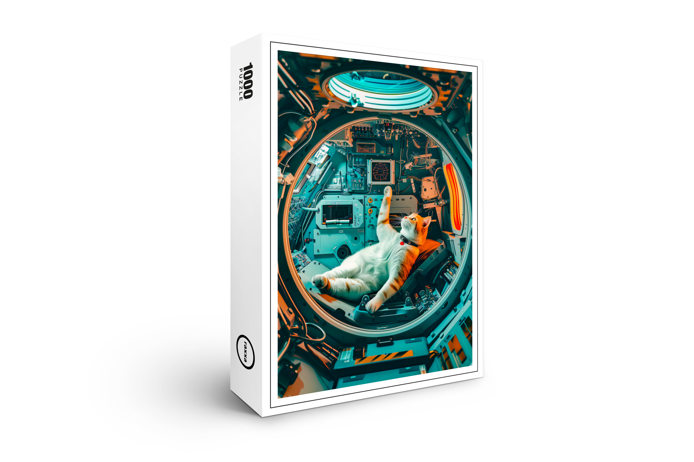 „Orange and white cat in spacecraft cockpit“ by Anja Frost