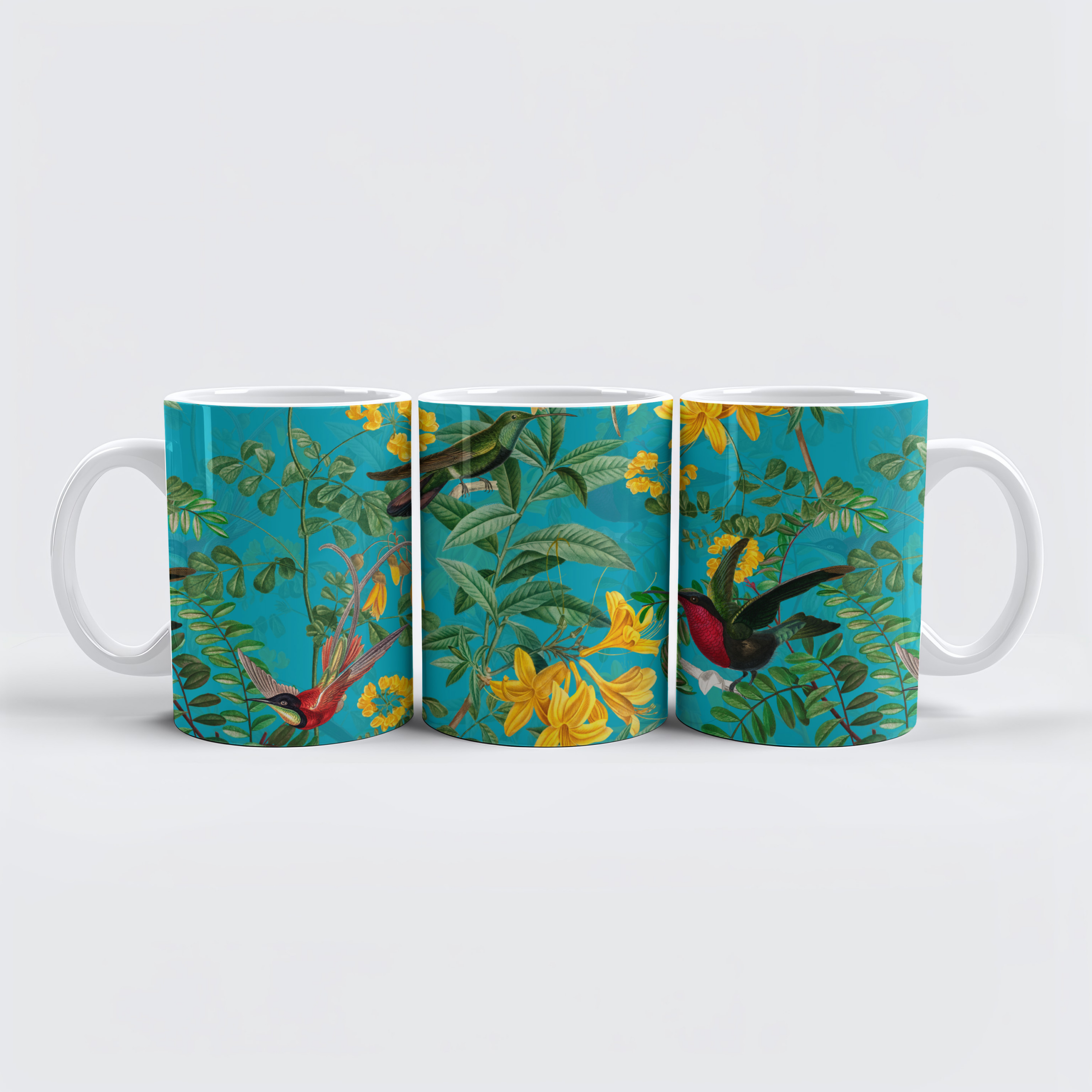 Un motivo turchese vintage dal sapore tropicale ed esotico vi trasporta in un mondo di eleganza e fascino. Fiori lussureggianti ed esotici dai colori vivaci sbocciano su uno sfondo riccamente decorato, conferendo al motivo uno splendore naturale. I colibrì esotici, con le loro piume colorate e gli squisiti motivi, aggiungono un tocco giocoso al disegno. Questo lussuoso disegno combina la bellezza della natura con un tocco esotico ed emana un'eleganza senza tempo che incanta i sensi e trasporta in un mondo lontano e paradisiaco.