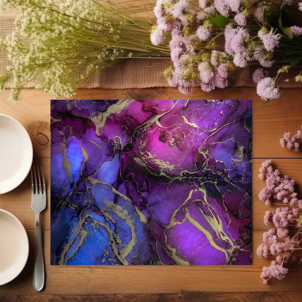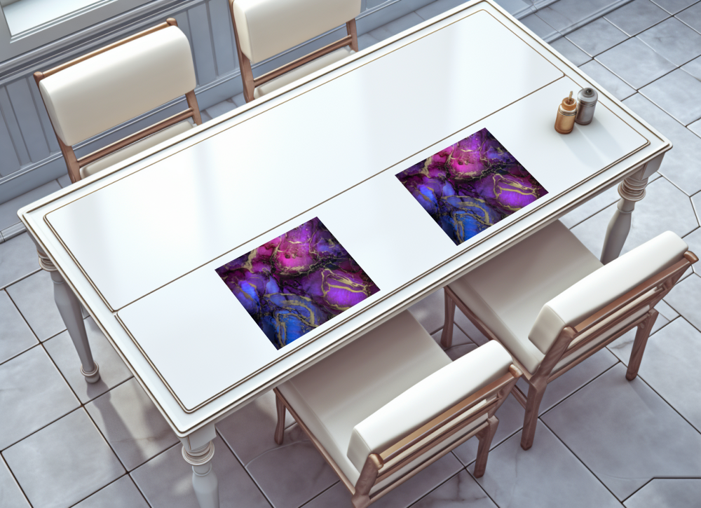 Ravvivate la vostra sala da pranzo con le tovagliette in vinile colorate dei nostri artisti! Queste tovagliette stampate su un solo lato sono realizzate in materiale resistente e sono perfette per aggiungere un tocco di colore alla vostra tavola. Misurano 40 x 30 cm e sono della misura giusta per qualsiasi stoviglia. Abbelliscono i vostri pasti con stile e praticità!