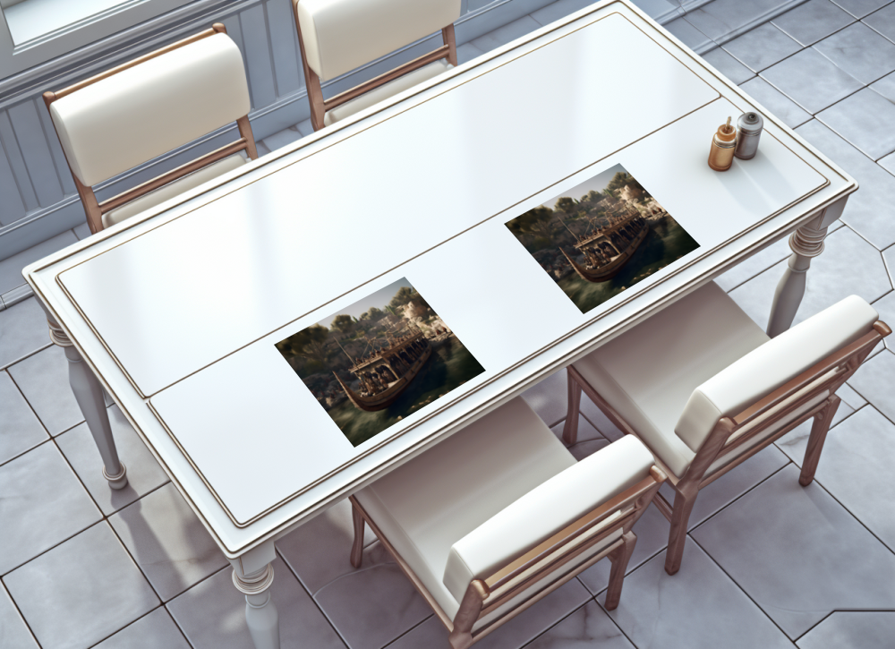 Ravvivate la vostra sala da pranzo con le tovagliette in vinile colorate dei nostri artisti! Queste tovagliette stampate su un solo lato sono realizzate in materiale resistente e sono perfette per aggiungere un tocco di colore alla vostra tavola. Misurano 40 x 30 cm e sono della misura giusta per qualsiasi stoviglia. Abbelliscono i vostri pasti con stile e praticità!