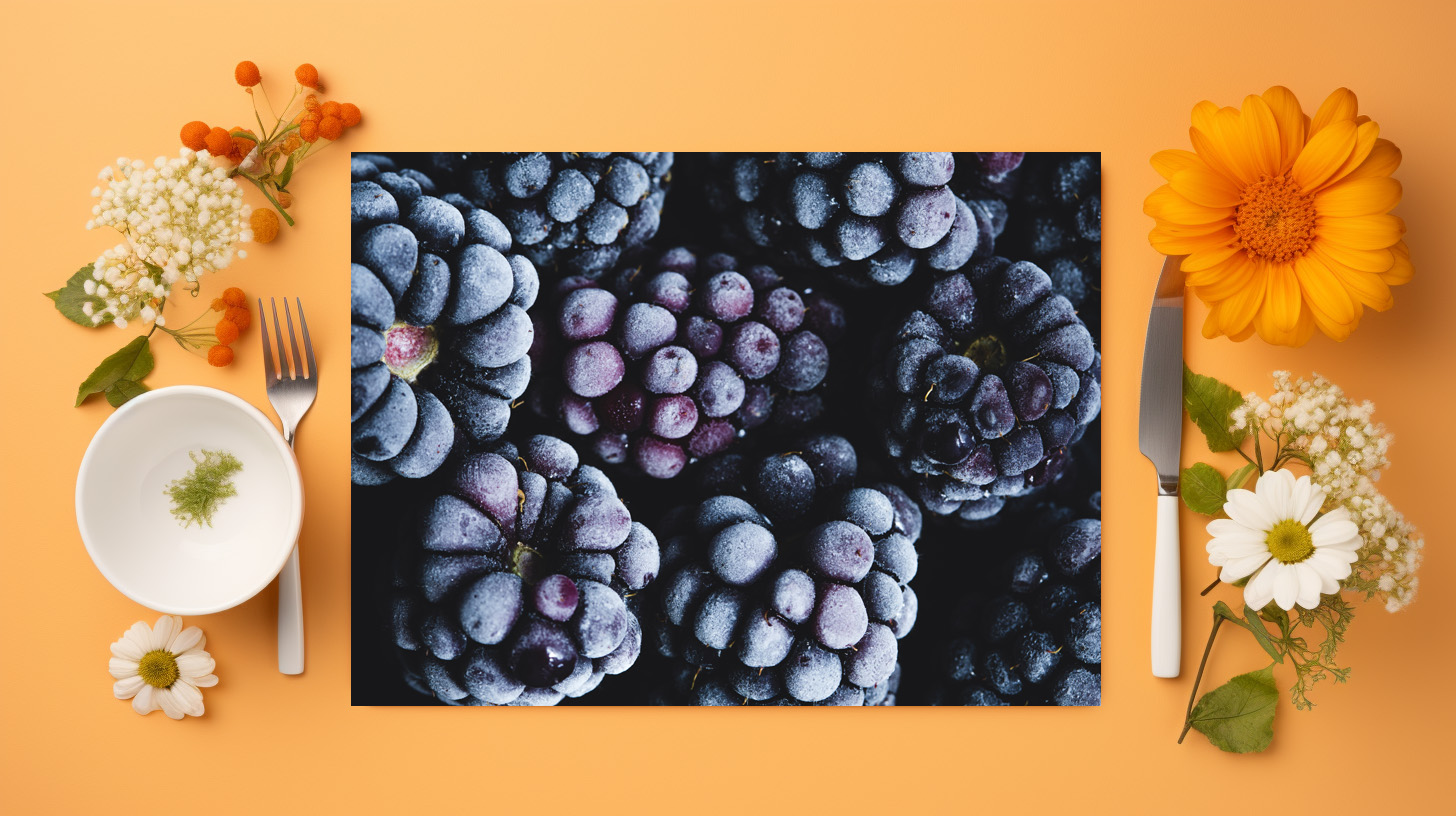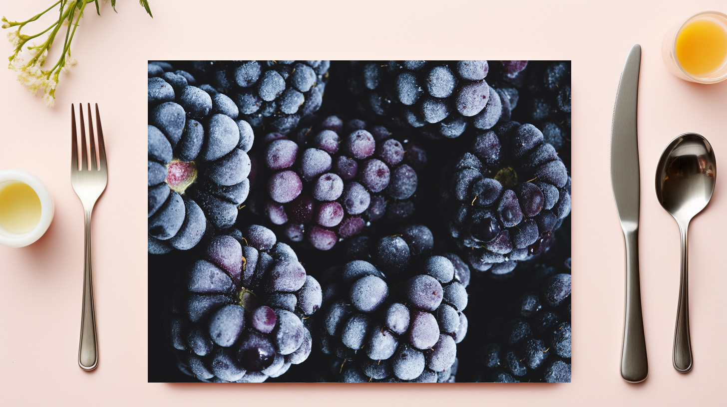 Investing in a photo of frozen berries may seem unconventional, but it\s a unique and thoughtful gift or addition to your home decor. The vibrant colours and textures of the frozen berries will add a pop of colour and visual interest to any room, making it a great conversation starter. Moreover, the photo is a great way to capture the beauty of nature\s fleeting moments, as the frozen berries will never be the same again.