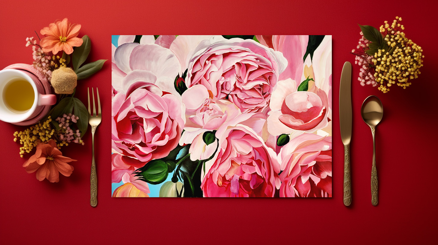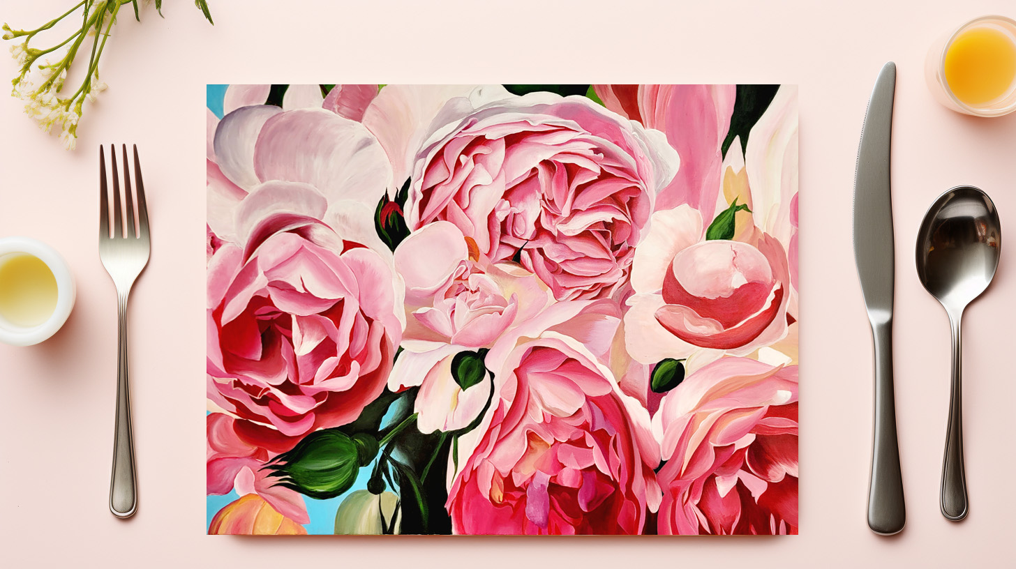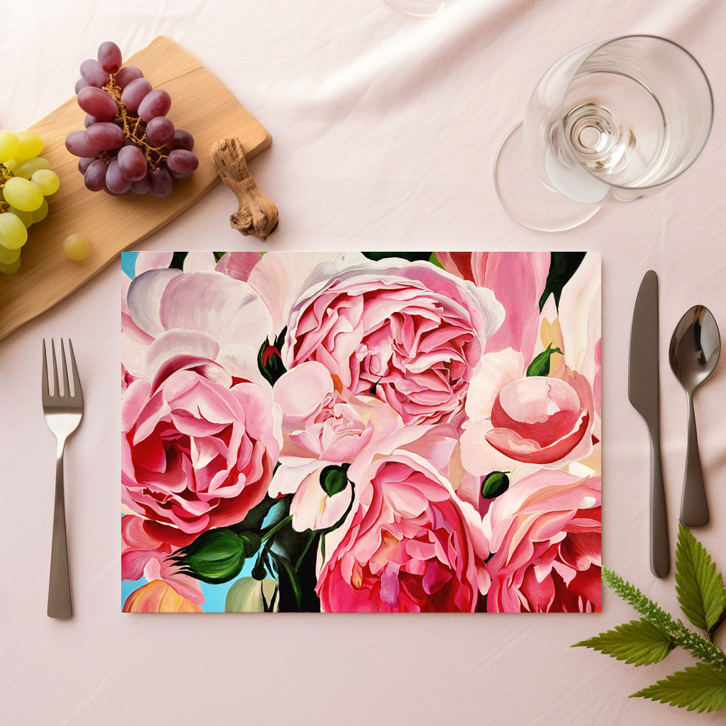 Ravvivate la vostra sala da pranzo con le tovagliette in vinile colorate dei nostri artisti! Queste tovagliette stampate su un solo lato sono realizzate in materiale resistente e sono perfette per aggiungere un tocco di colore alla vostra tavola. Misurano 40 x 30 cm e sono della misura giusta per qualsiasi stoviglia. Abbelliscono i vostri pasti con stile e praticità!