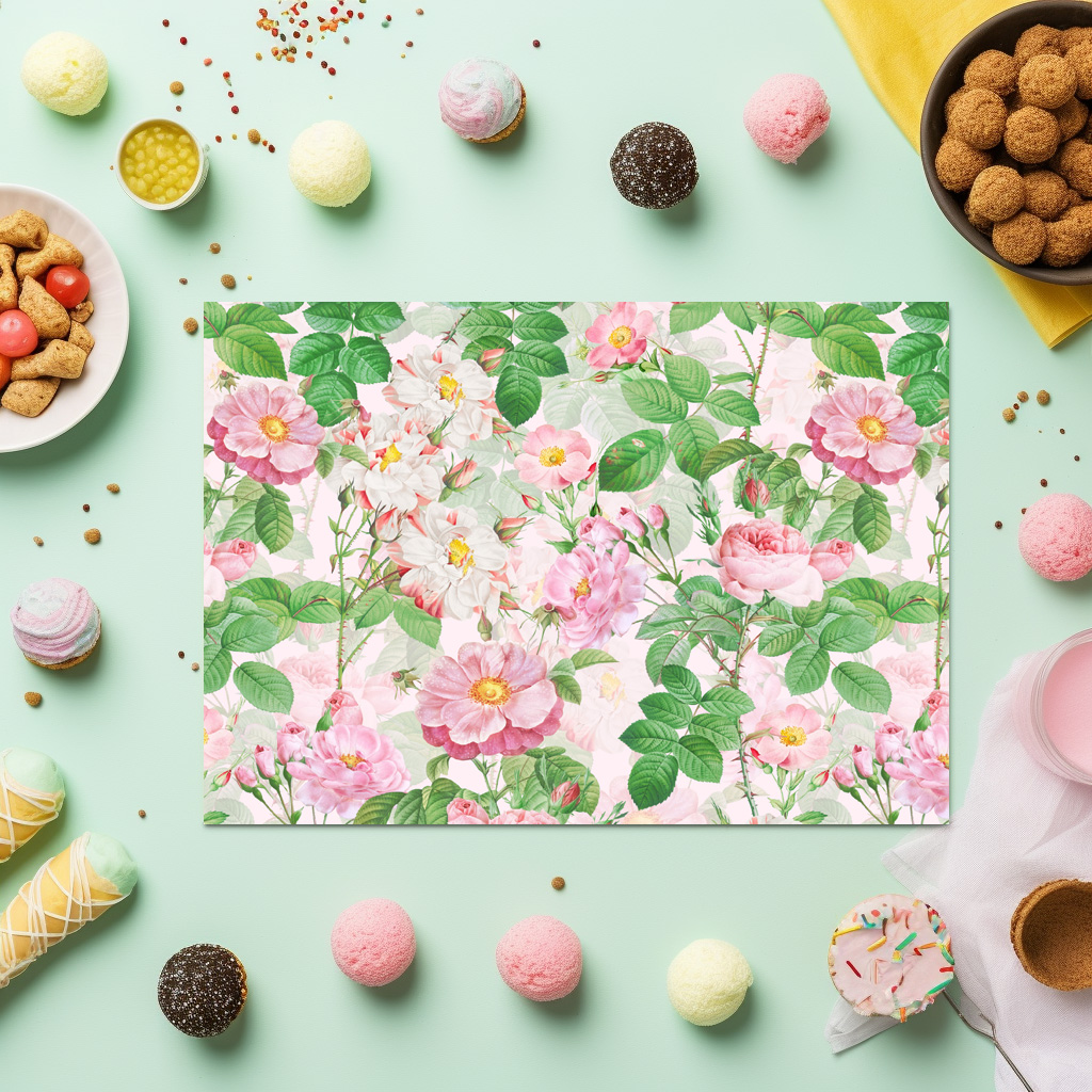 Un nostalgico motivo di rose, ispirato a maestri di epoche passate come Pierre-Joseph Redouté, presenta rose sapientemente dipinte a mano che si intrecciano armoniosamente con altre delicate fioriture. In questo lussuoso design vintage, le rose sono presentate in ricche tonalità di rosso e rosa, mentre delicate foglie arricchiscono il disegno con il loro romantico splendore. L'aspetto complessivo ricorda un'epoca passata in cui artigianato e natura si fondevano in armonia, emanando un'aria di romanticismo vintage e lusso senza tempo. Questo motivo a rose è un omaggio all'arte e alla bellezza dei tempi passati e fa rivivere con eleganza il romanticismo delle epoche passate.