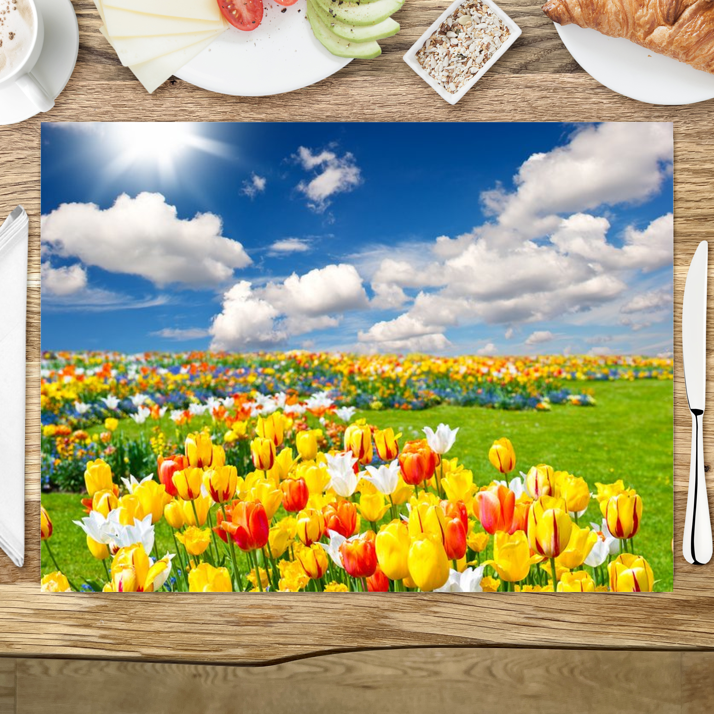 Ravvivate la vostra sala da pranzo con le tovagliette in vinile colorate dei nostri artisti! Queste tovagliette stampate su un solo lato sono realizzate in materiale resistente e sono perfette per aggiungere un tocco di colore alla vostra tavola. Misurano 40 x 30 cm e sono della misura giusta per qualsiasi stoviglia. Abbelliscono i vostri pasti con stile e praticità!
