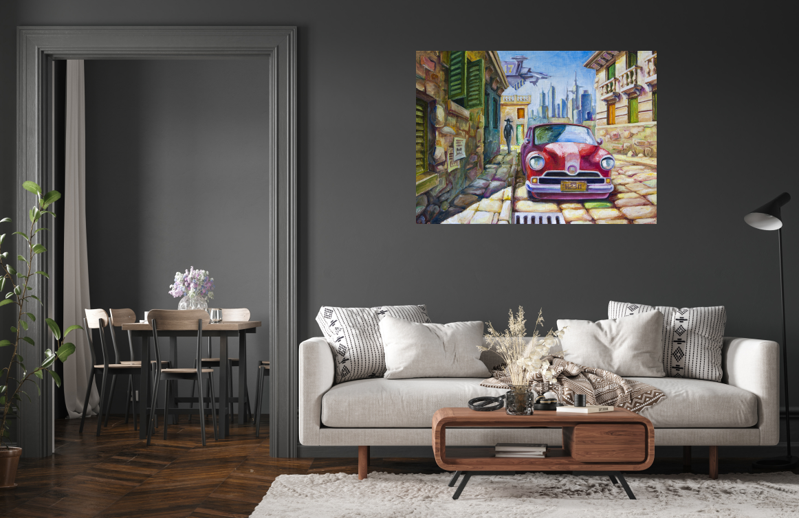 kuba bild auto vintage zukunft city illustration oldtimer sonnig abstand schiff traditionell öl sommer fensterläden amerika stadt stein fenster fantasie straßenbelag architektur haus fassade lateinamerikanisch stadt- gebäude außen- kunst wolkenkratzer jalousie klassiker reise- lowrider vorderseite straße retro- alt stil flugzeug beförderung frontscheinwerfer canvas mittelalterlich düsenflugzeug kolonial- amerikanisch fahrzeug rot kämpfer