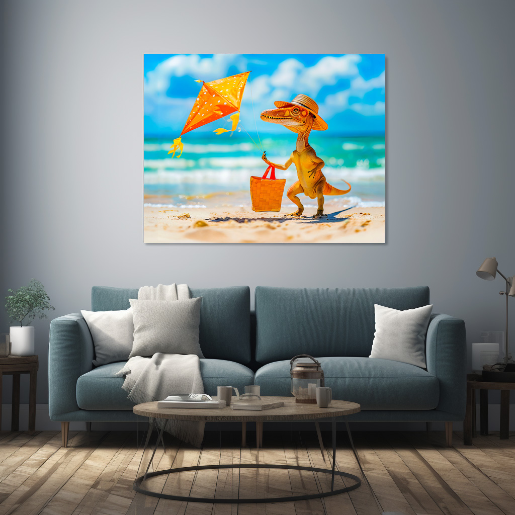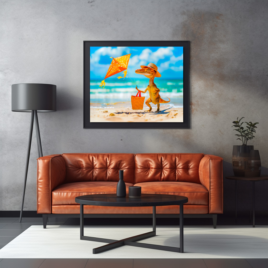 Schreibe die erste Bewertung für „Poster: Dino Flying Kite at Beach“