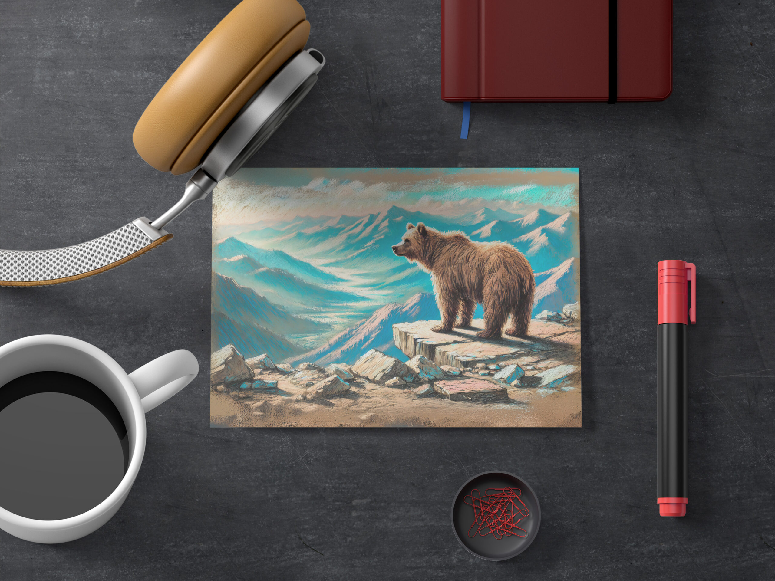 raxxa Postkarte: Brown Bear on Mountain Pastel Chalk Scene