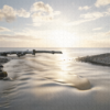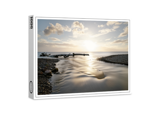 „Sonnenuntergang mit Fluss und Treibholz“ by Ralf Lehmann
