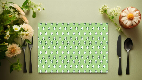 Mini pandas en distribución geométrica sobre fondo verde