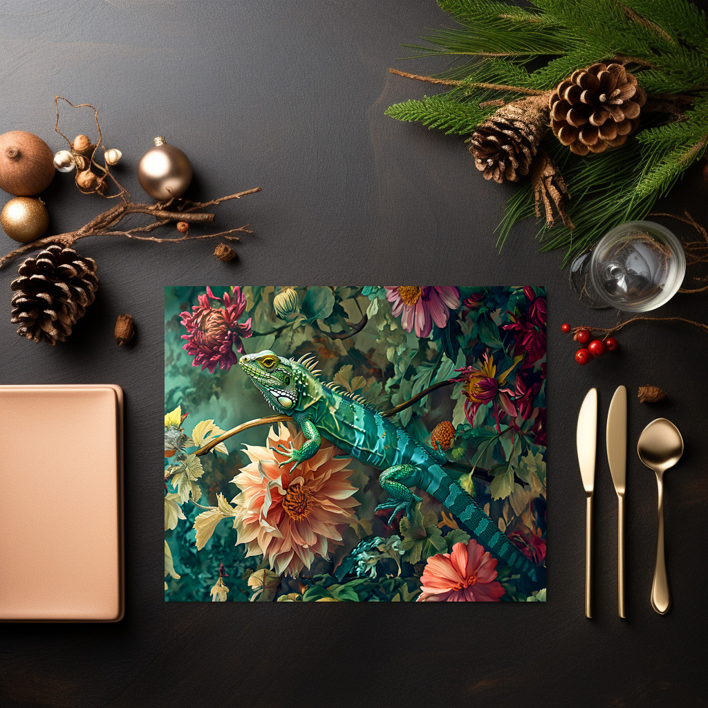"Lizard Between Dahlia Blooms Garden Illustration" by Anja Frost