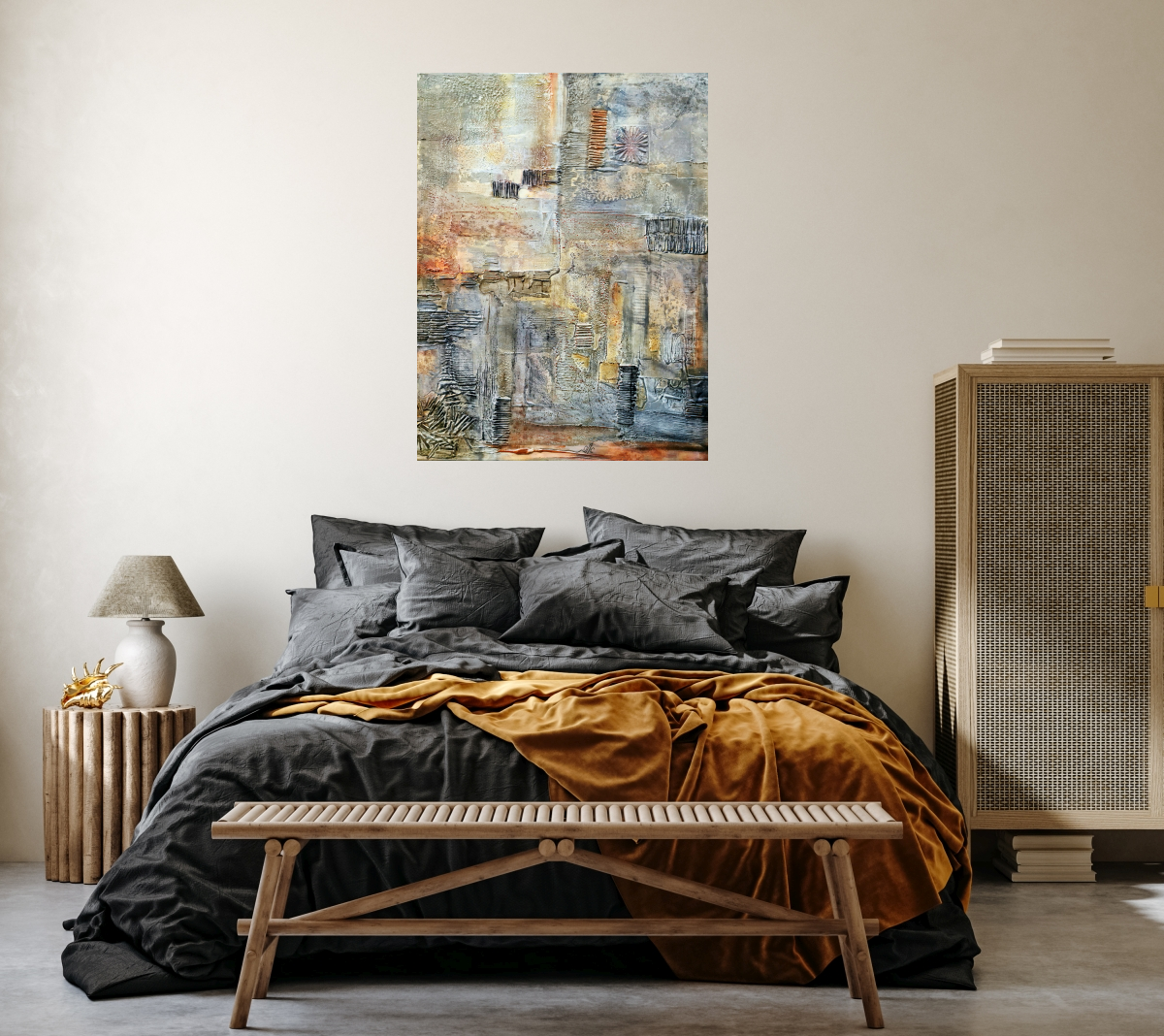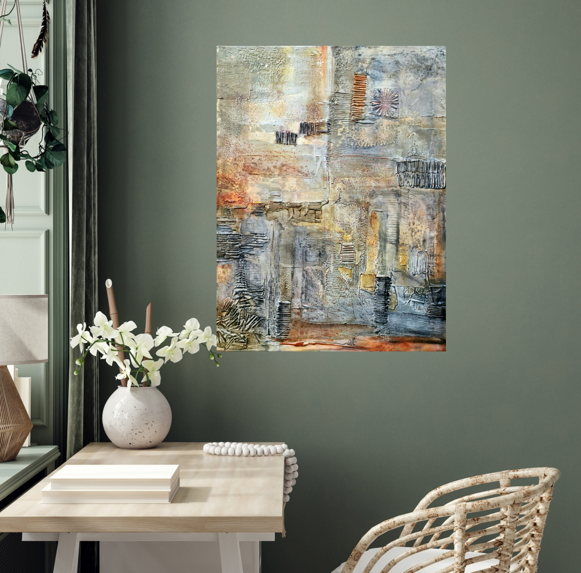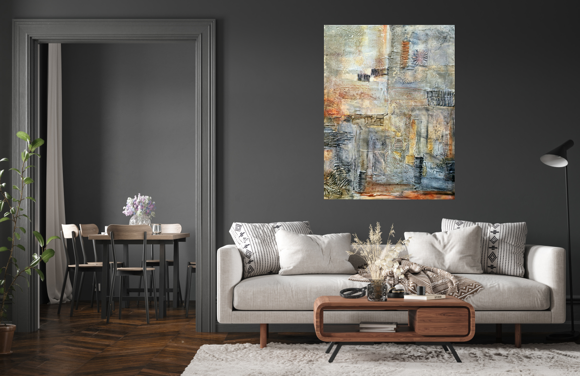 Acrylic painting with texture out of matches and spatula.